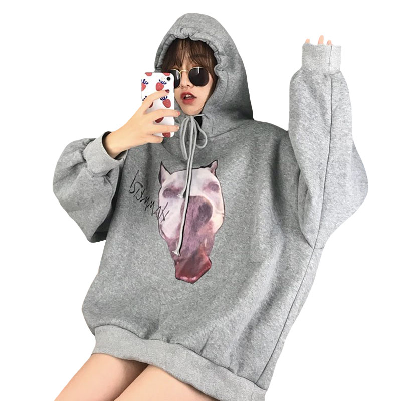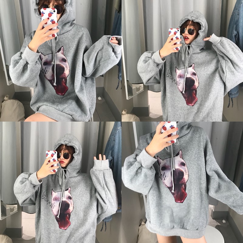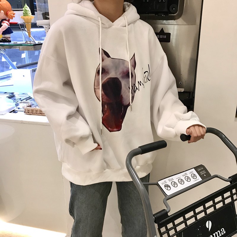 / 秋冬女裝韓版原宿風狗狗寬松慵懶風加絨加厚連帽套頭衛衣上衣外套