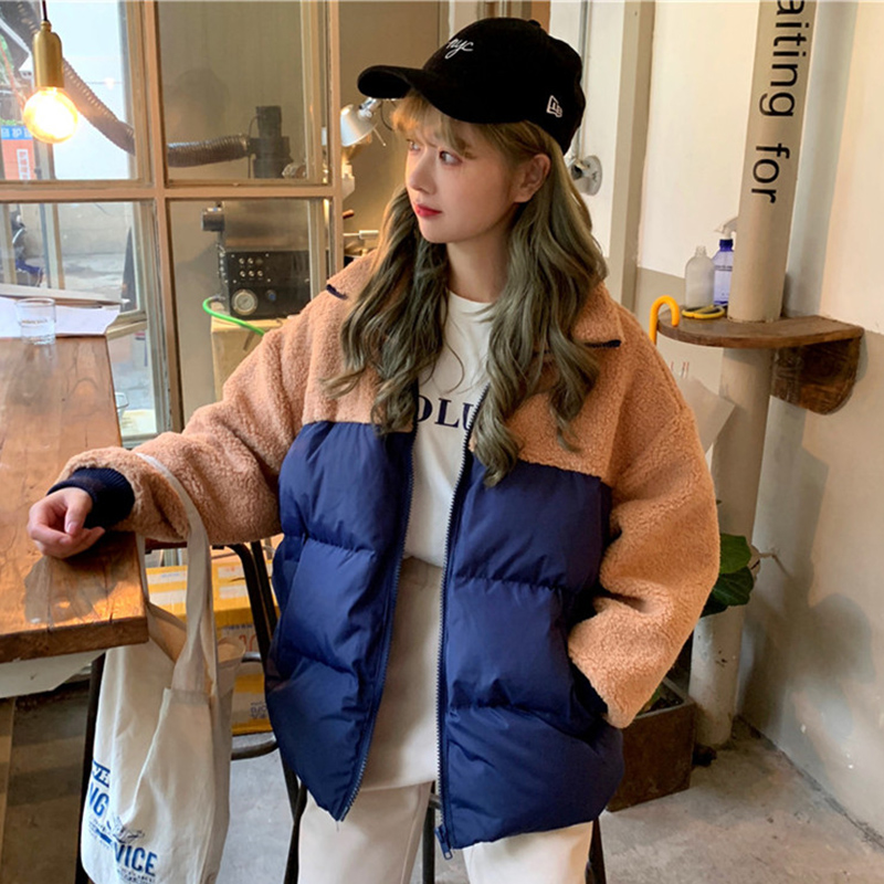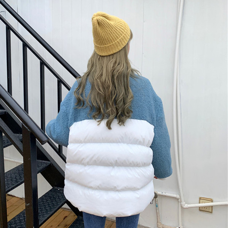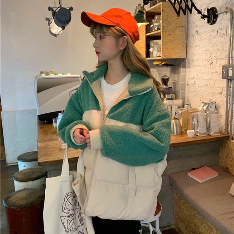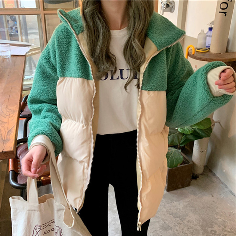 / 面包服女冬季新款羊羔毛撞色拼接棉衣外套加厚保暖學院風棉襖上衣