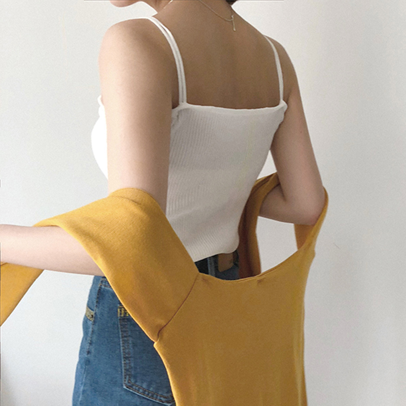 時尚糖果色雙吊帶針織背心秋裝女2018新款簡約修身打底衫短款上衣