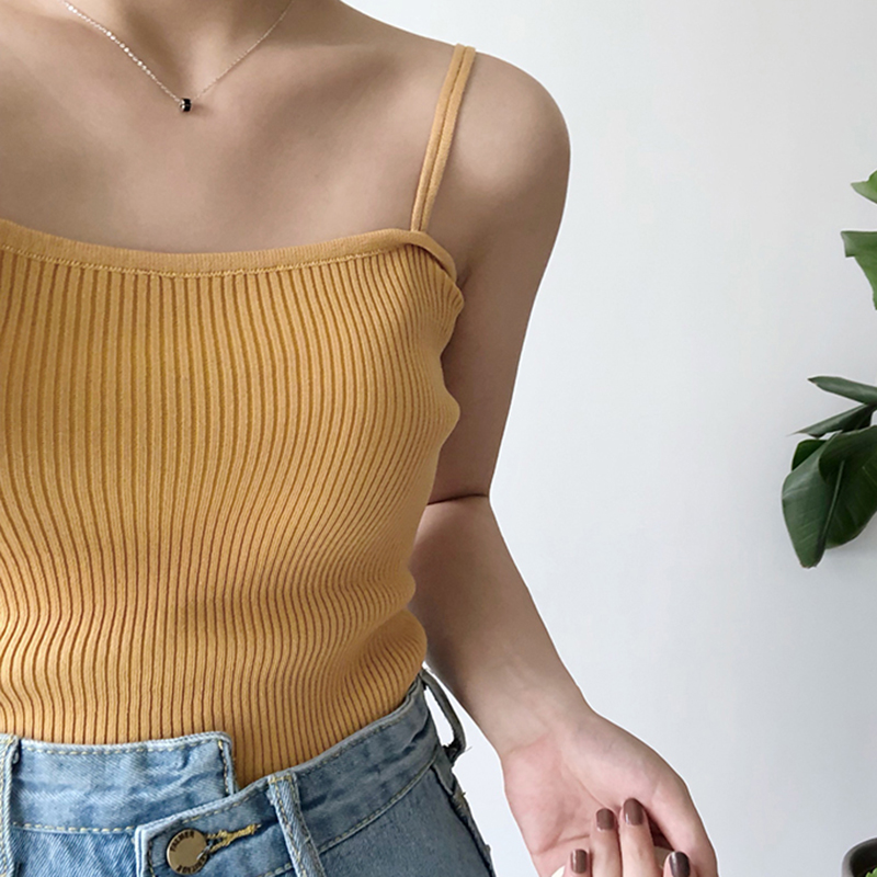 / 時尚糖果色雙吊帶針織背心秋裝女2018新款簡約修身打底衫短款上衣