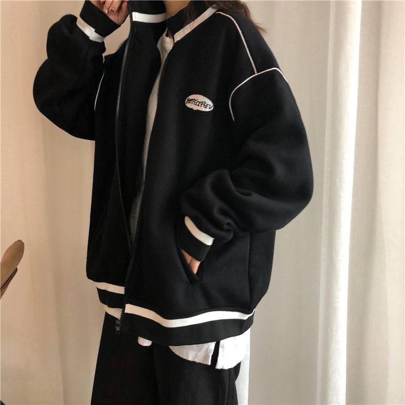 / 秋冬韓版中長款學院風慵懶風寬松加絨加厚拉鏈衛衣開衫上衣外套女