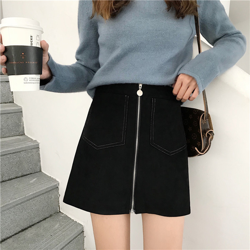 / 裙子女秋裝2018新款時尚麂皮絨半身裙氣質高腰A字裙拉鏈包臀短裙
