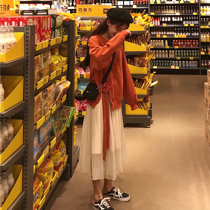 早秋兩件套新款韓版開叉綁帶衛衣外套+大擺半身裙時尚休閑套裝女