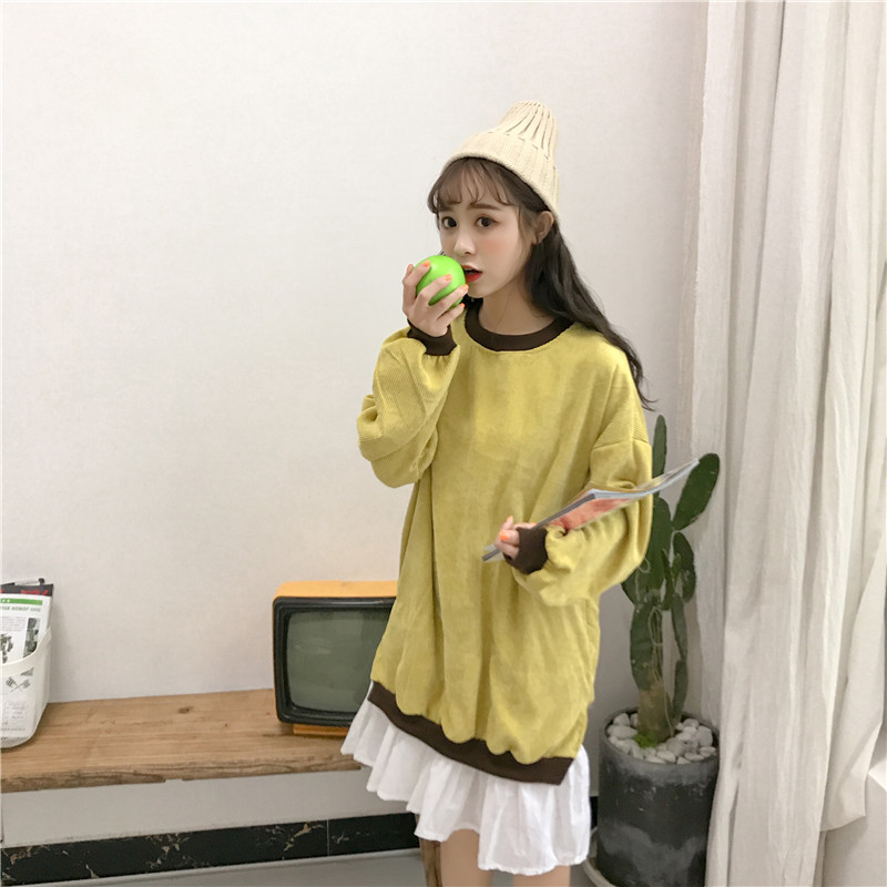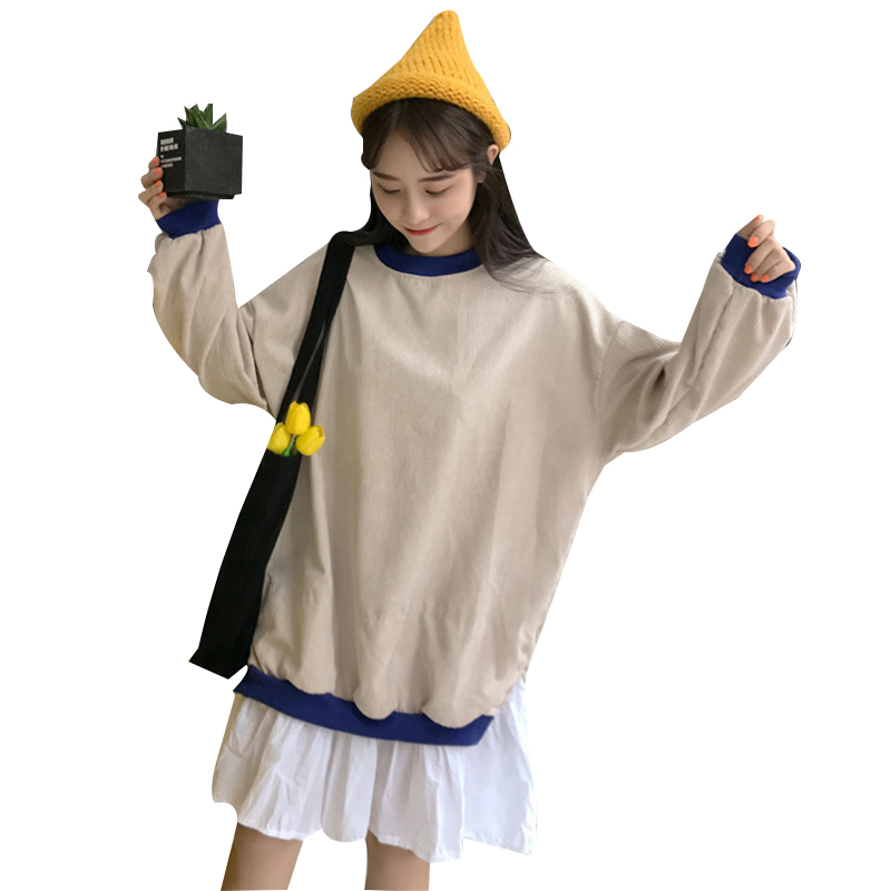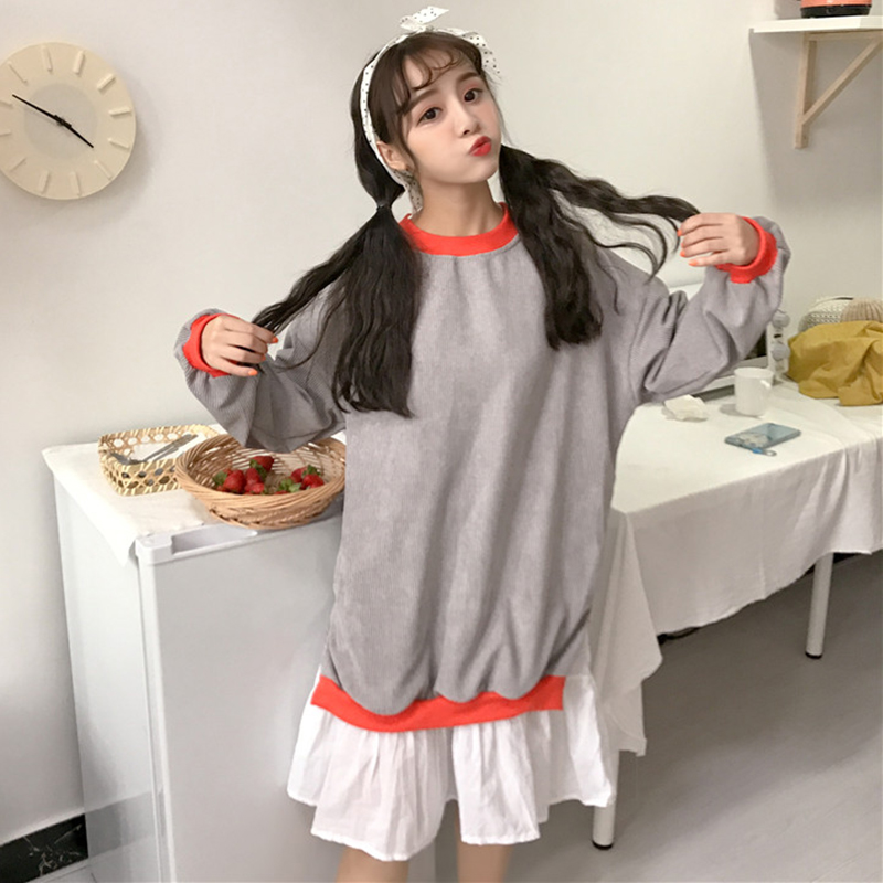 女2018新款秋裝韓版學生假兩件長袖連衣裙子時尚清新荷葉邊衛衣裙