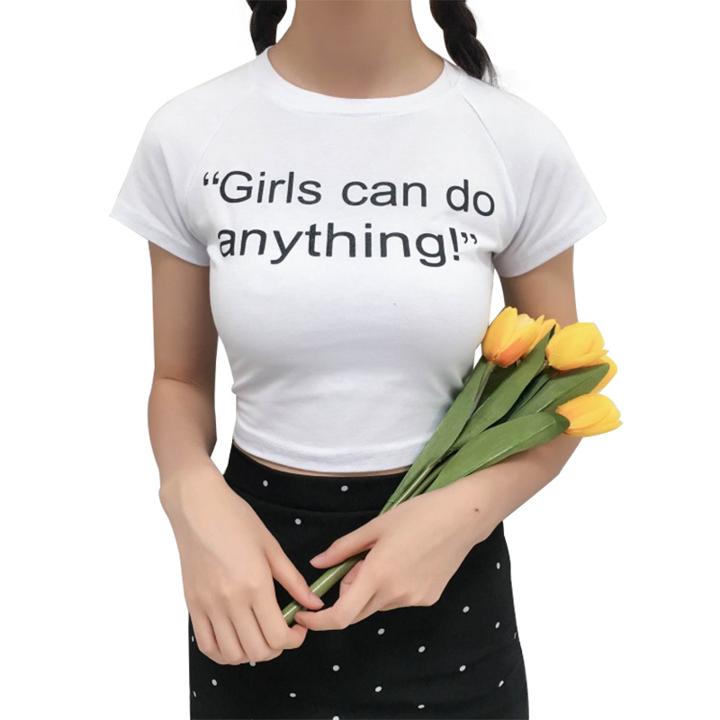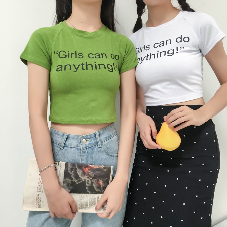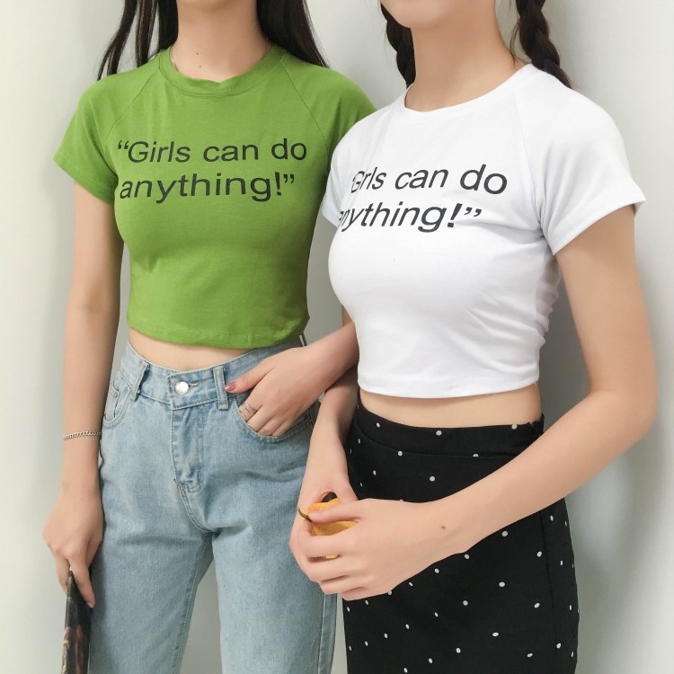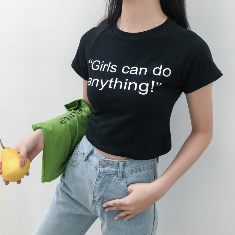 早秋新款女裝短款露臍修身顯瘦字母印花學生百搭打底短袖T恤上衣