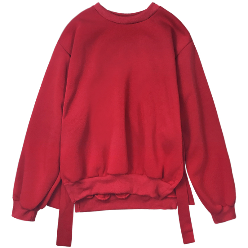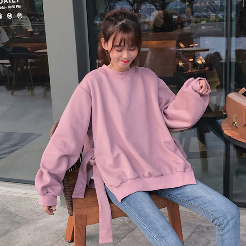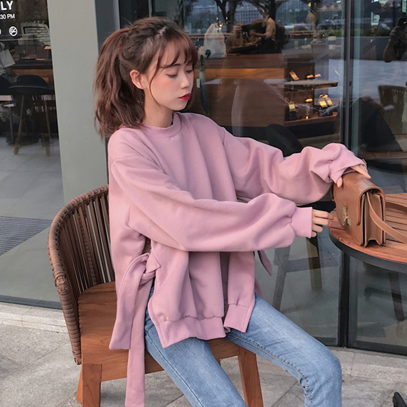 / 個性開叉系帶加絨衛衣秋冬2018女裝新款圓領外套學生寬松長袖上衣