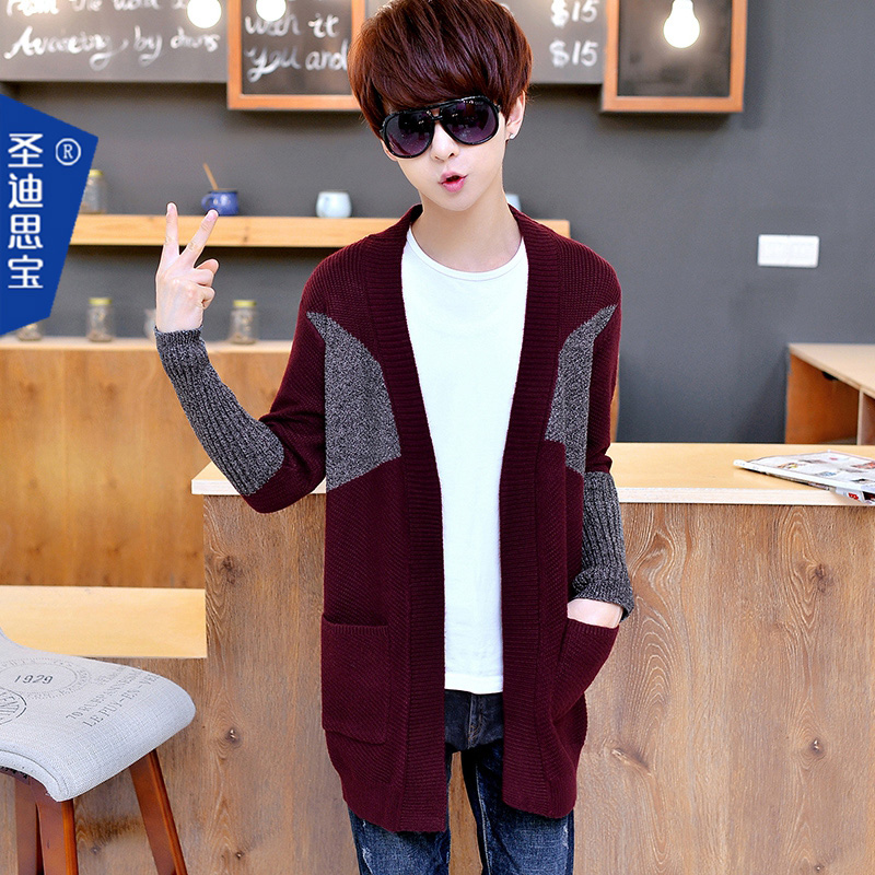 秋季男士毛衣青少年針織衫學生外套韓版修身開衫男裝中長款風衣潮