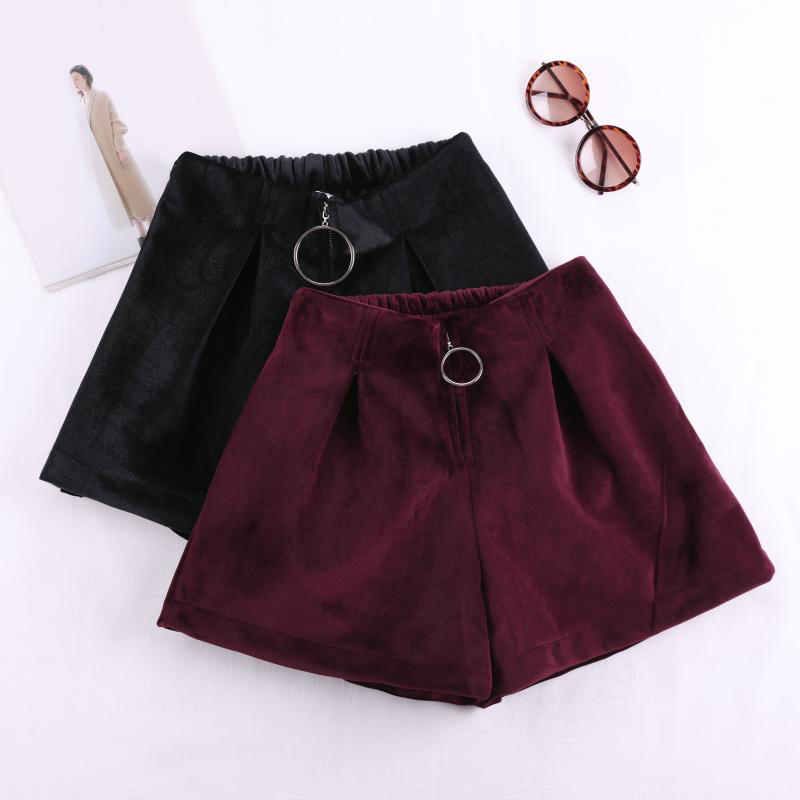 / 金絲絨黑褲子秋冬女裝2018新款韓版高腰寬松闊腿短褲時尚外穿靴褲