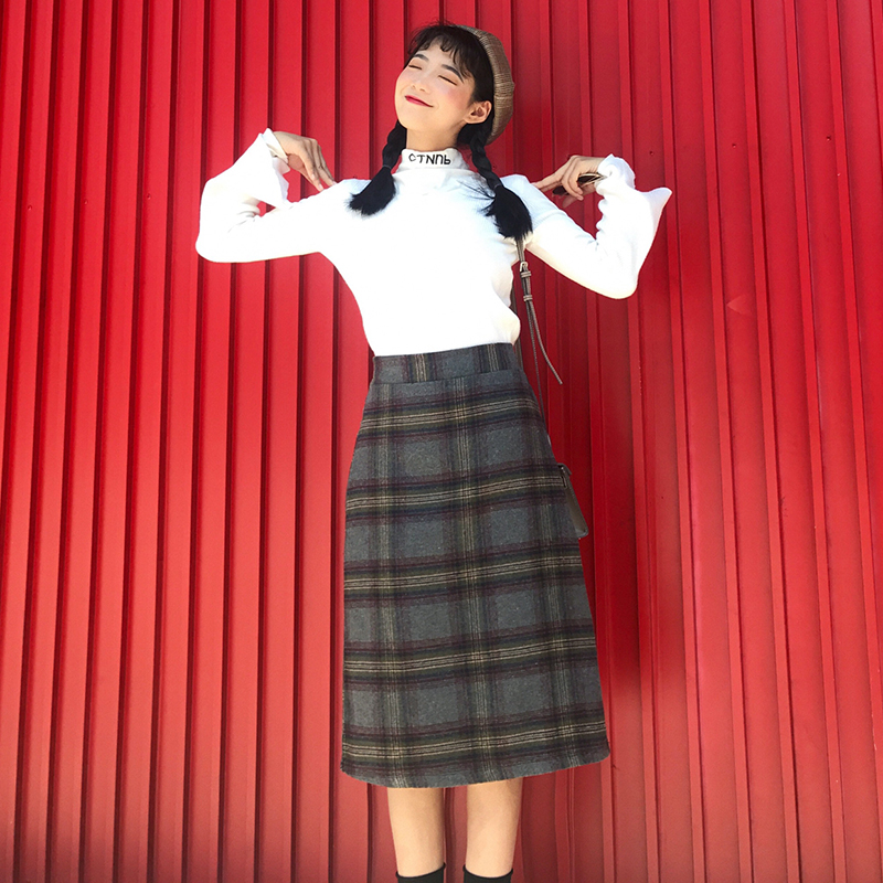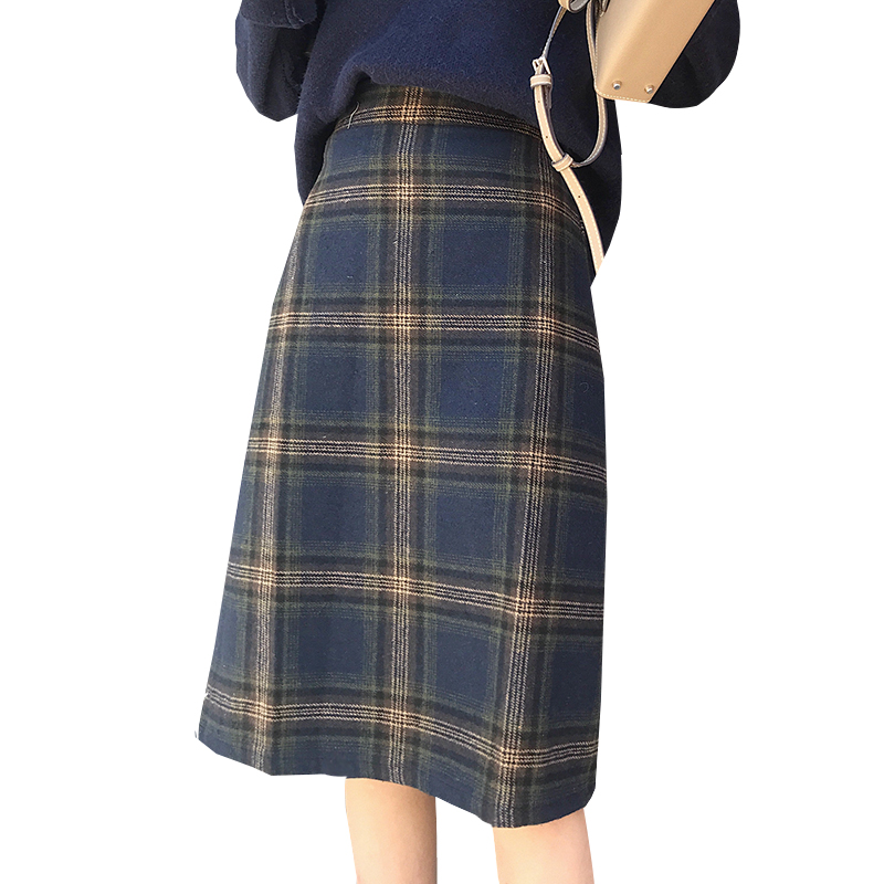 秋冬復古高腰格子毛呢半身裙女裝2018新款氣質時尚加厚a字中長裙