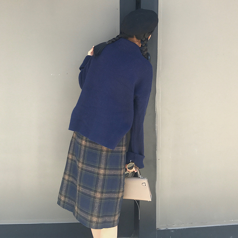 / 秋冬復古高腰格子毛呢半身裙女裝2018新款氣質時尚加厚a字中長裙