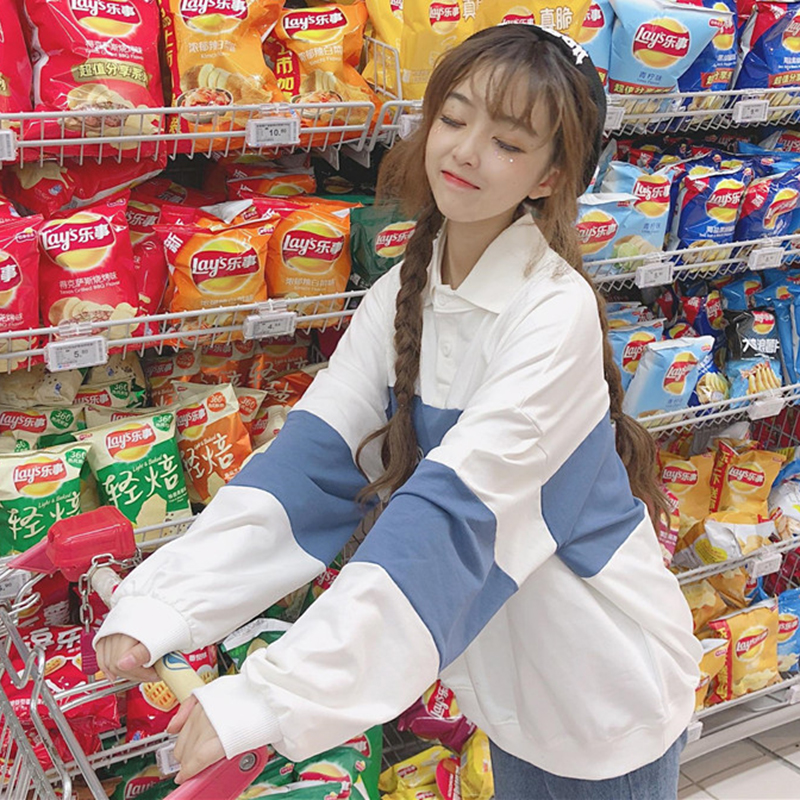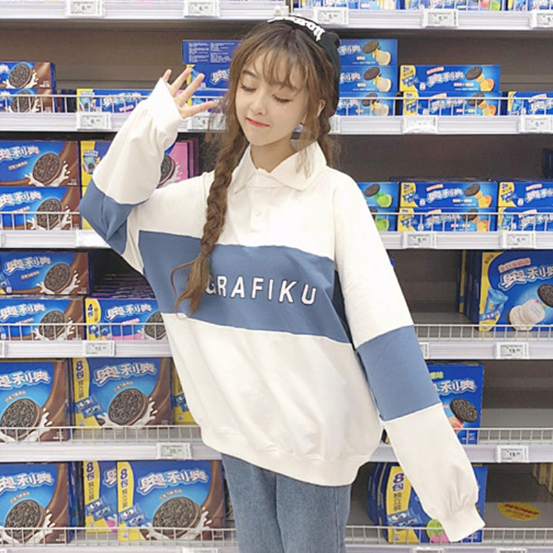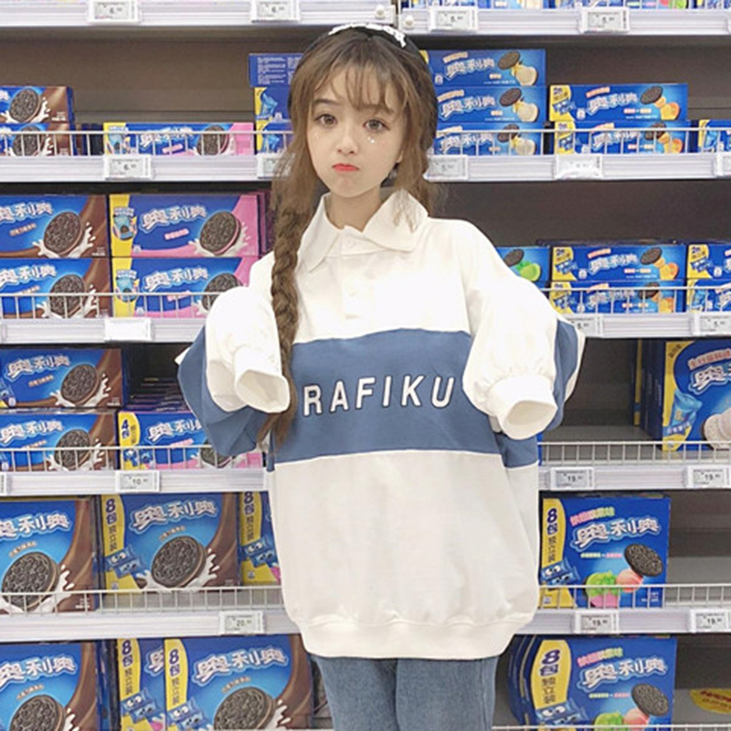 / 時尚拼色字母印花衛衣女秋裝新款休閑慵懶外套學生寬松長袖上衣潮