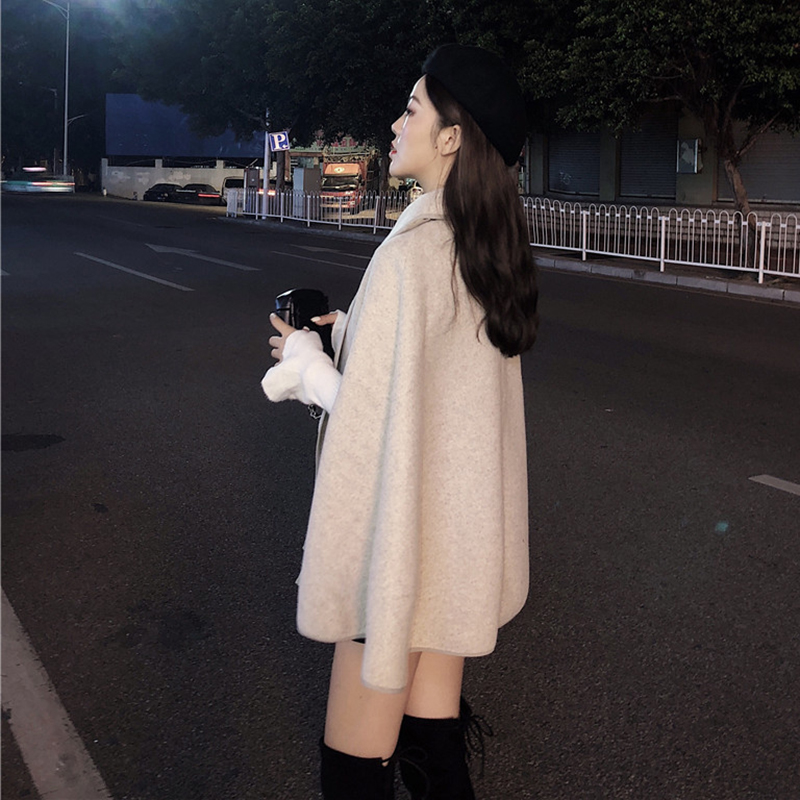 小個子翻領寬松毛呢外套女秋冬裝2018新款氣質披肩斗篷長袖上衣潮