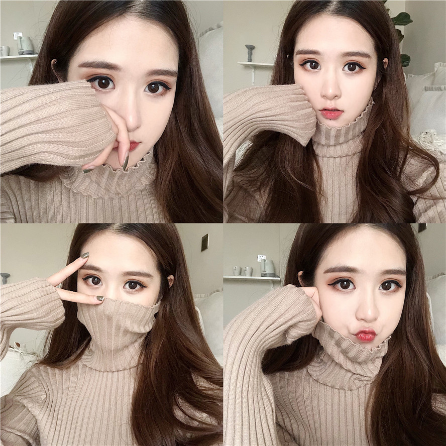 / 秋冬女裝韓版修身顯瘦坑條高領毛衣純色網紅套頭打底衫針織衫上衣