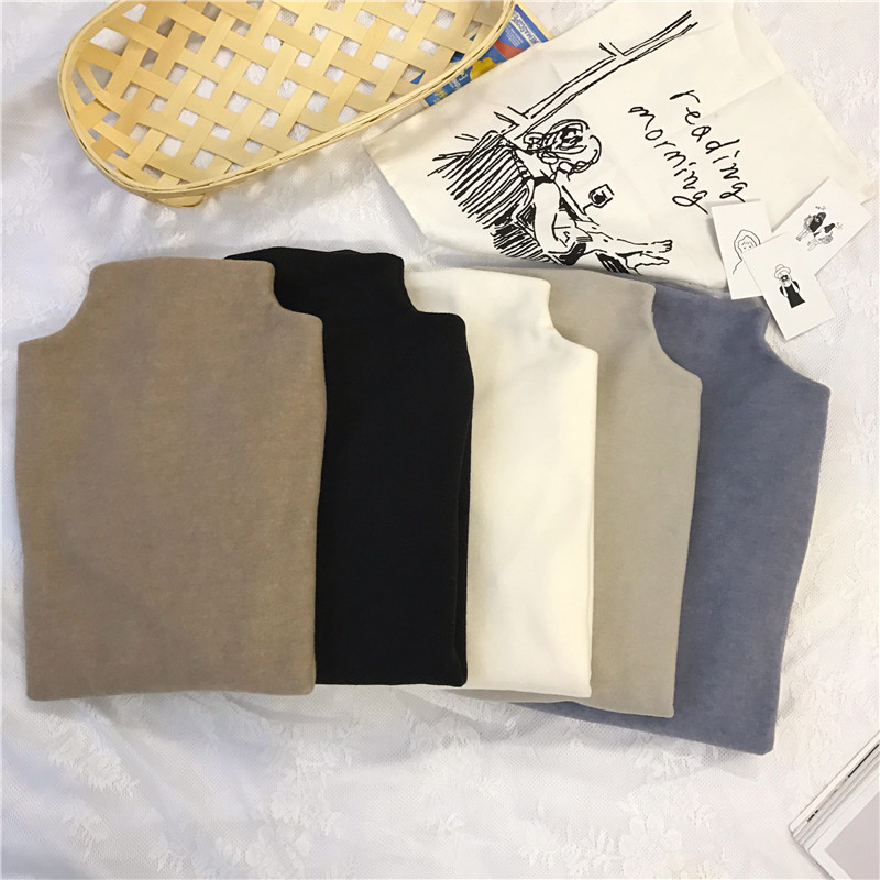 修身半高領打底衫秋季2018新款女裝韓版純色長袖T恤休閑呢子上衣