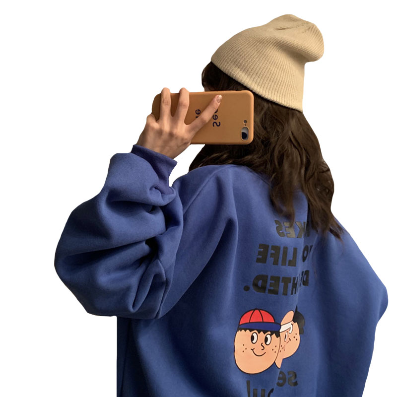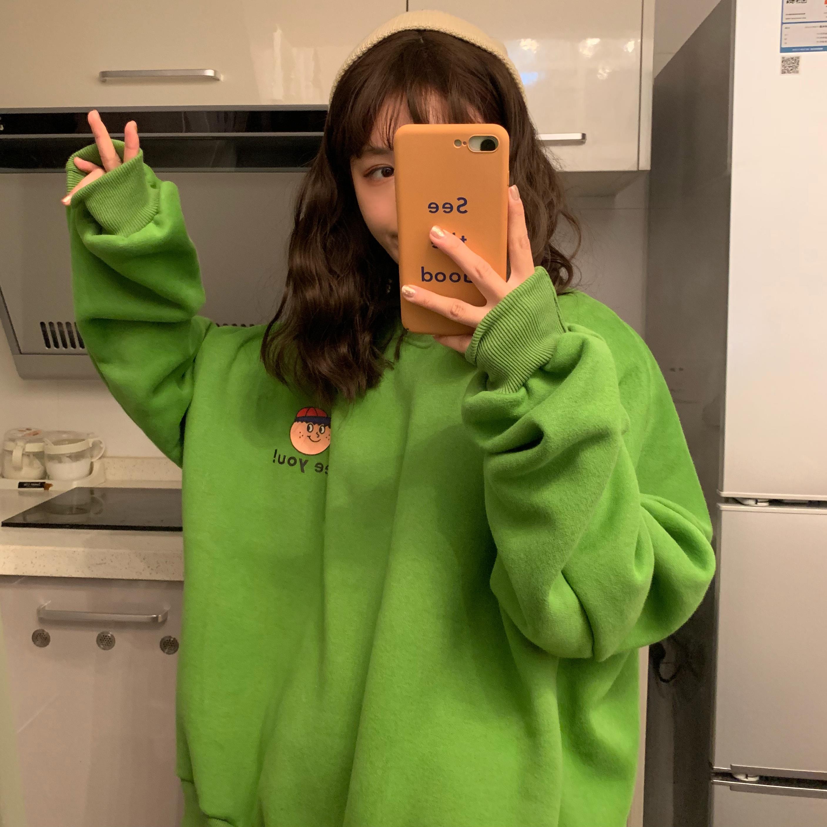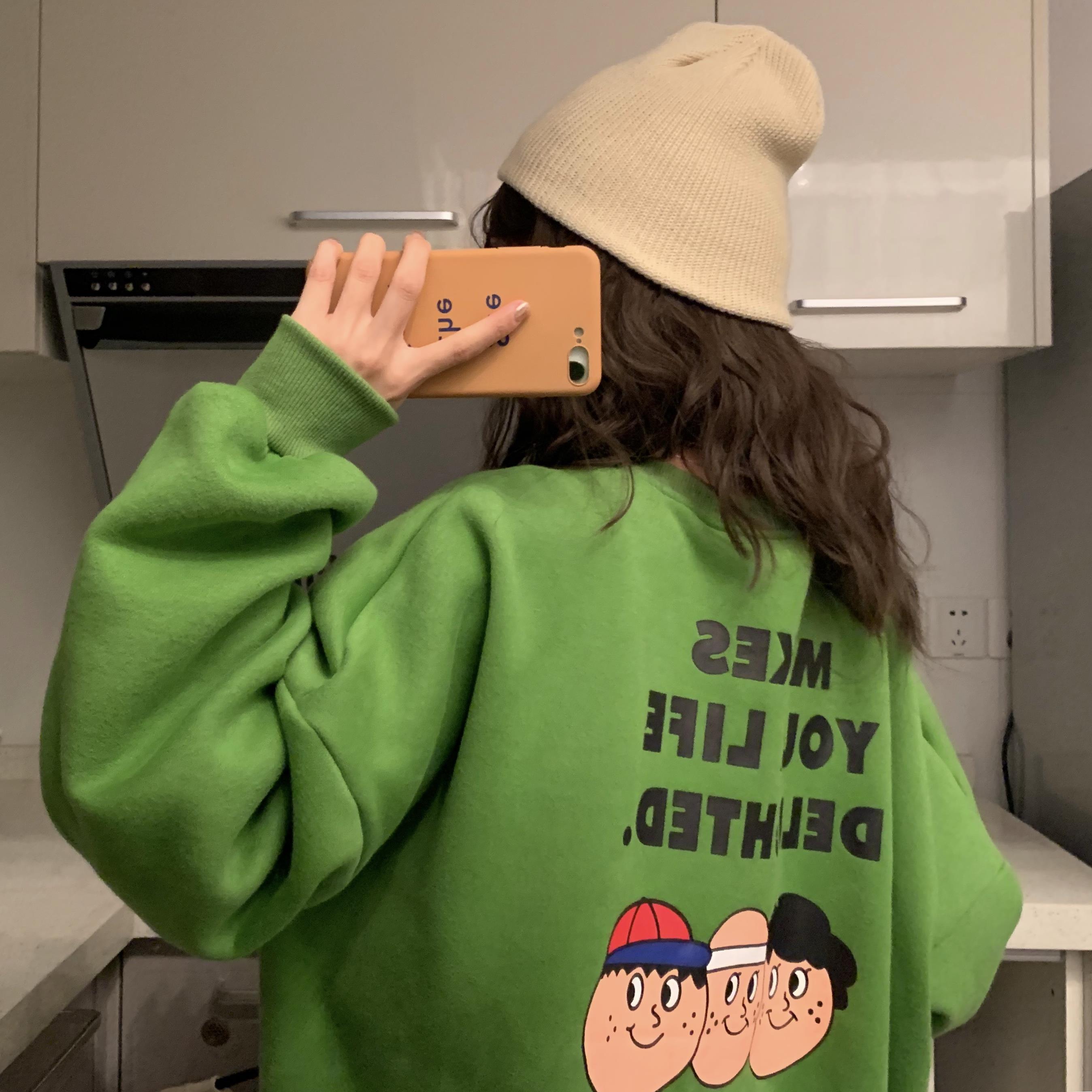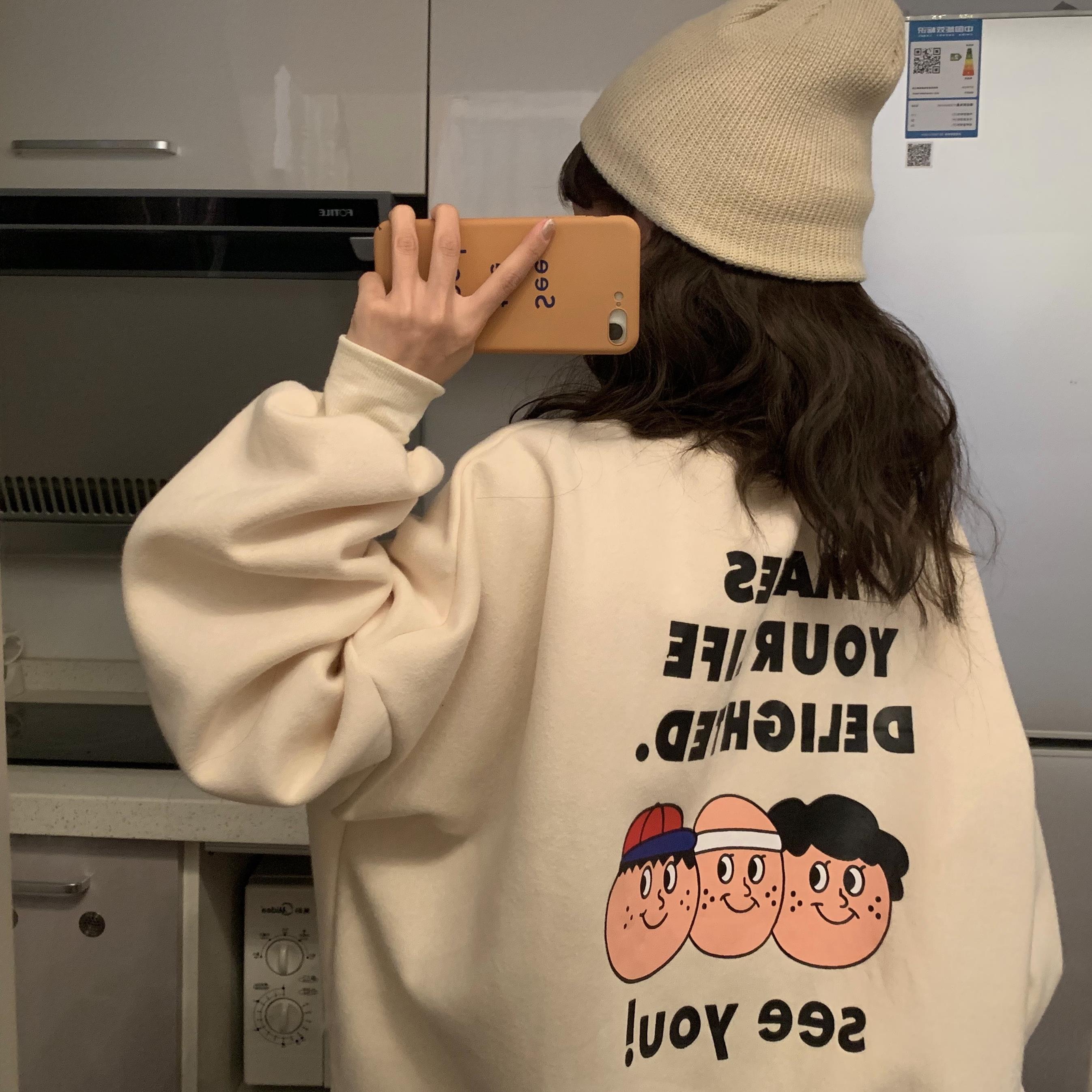 2018新款秋冬韓版原宿風寬松字母卡通加絨加厚套頭衛衣上衣外套女
