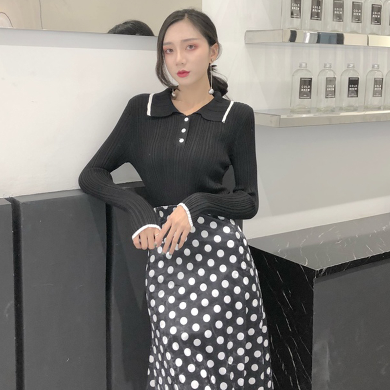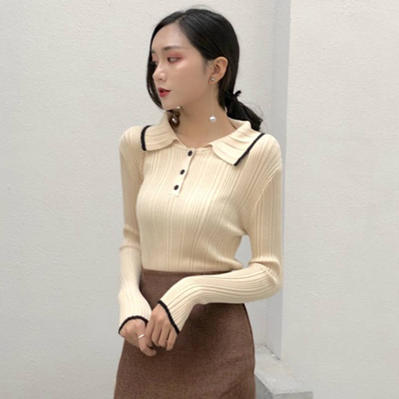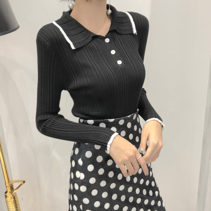 學院風polo領針織衫女秋冬裝2018新款韓版修身顯瘦長袖打底薄毛衣