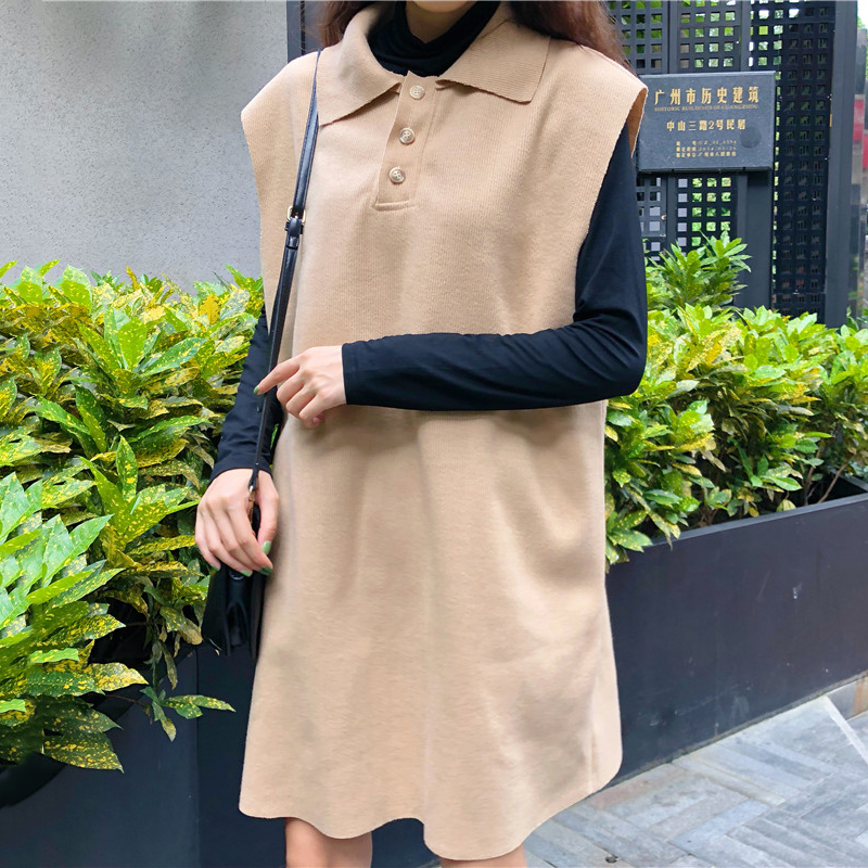 早秋新款寬松背心馬甲連衣裙女學生韓版長袖T恤打底上衣兩件套裝