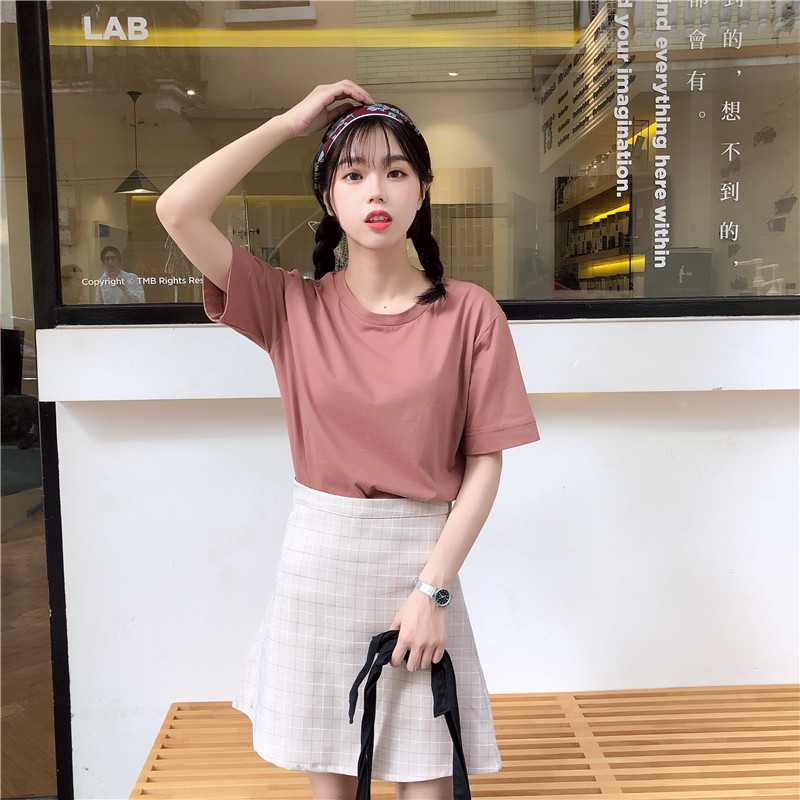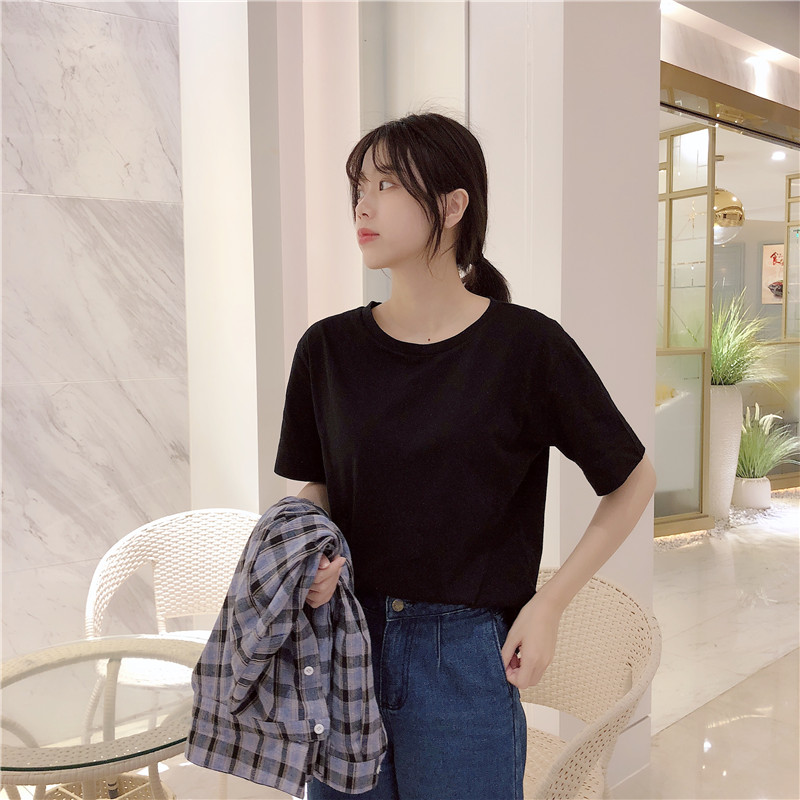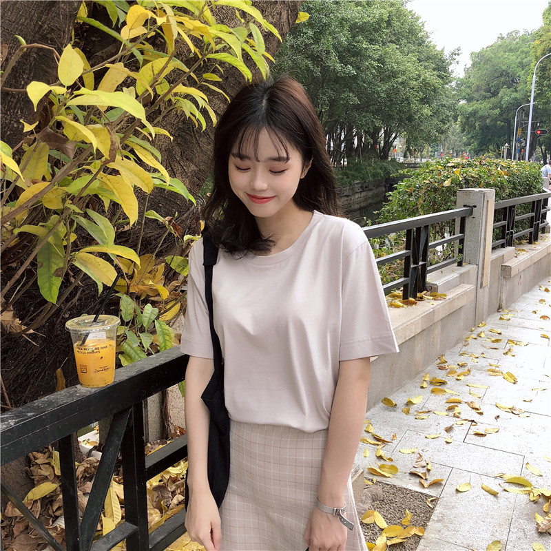 / 春夏新款女裝基礎款純色休閑百搭寬松顯瘦學生短袖T恤打底衫上衣