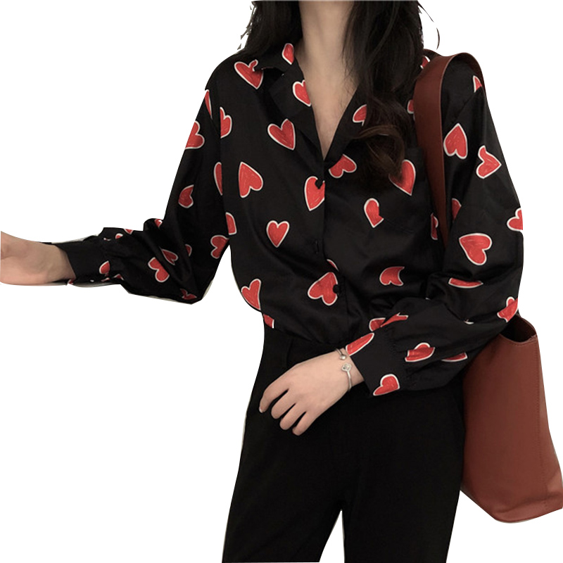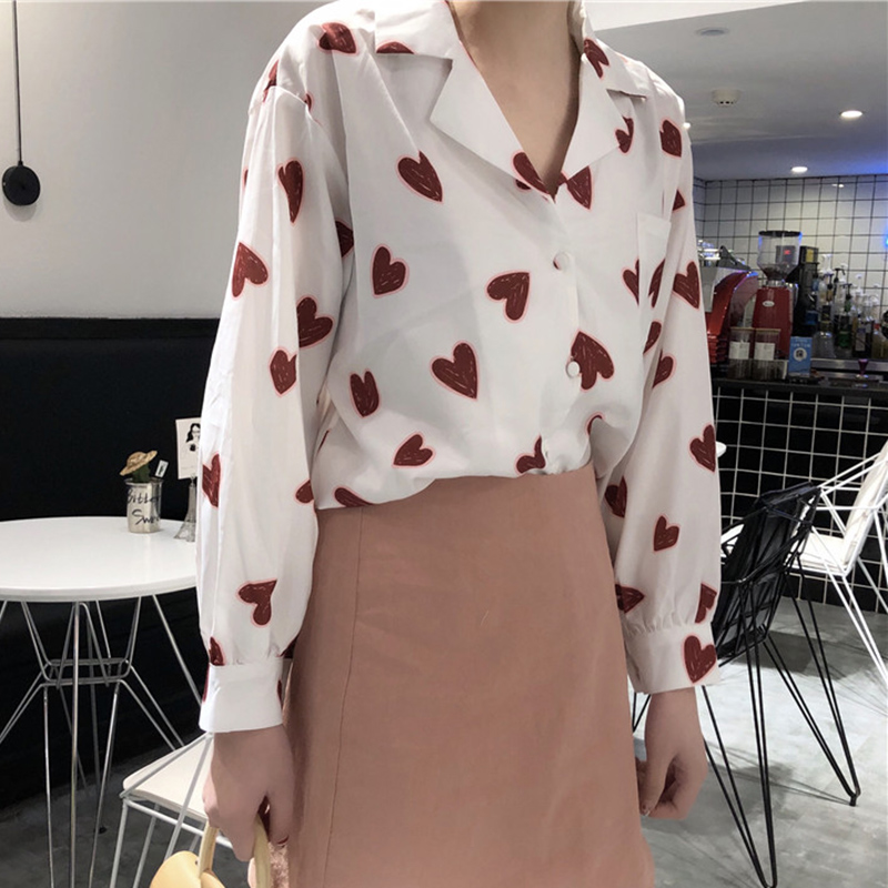 / 印花襯衫女裝新款夏季學生復古寬松翻領襯衣氣質休閑長袖防曬上衣