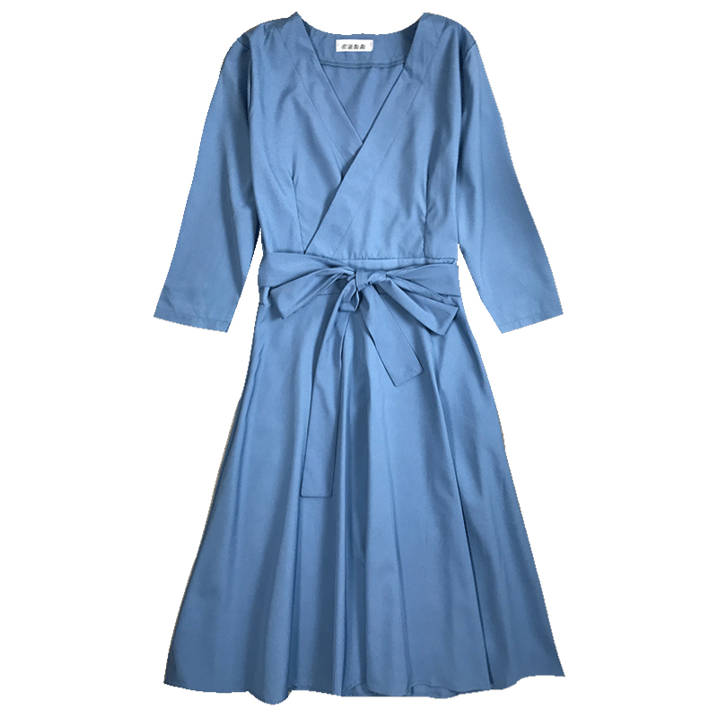 / 早秋復古女裝2018新款氣質收腰中長款連衣裙中袖V領A字裙大擺裙子