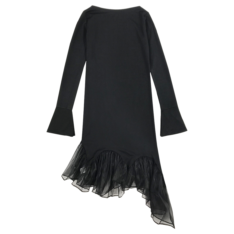 / 連衣裙女秋冬裝2018新款網紗拼接魚尾長袖打底裙黑色高腰中長裙子