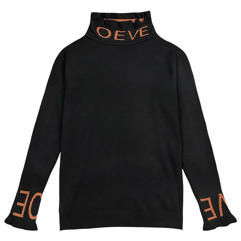 / 時尚字母刺繡打底針織衫女秋裝新款套頭毛衣木耳邊高領長袖上衣潮