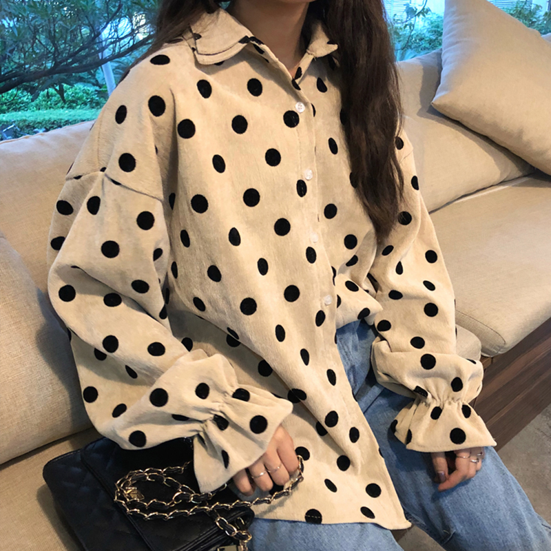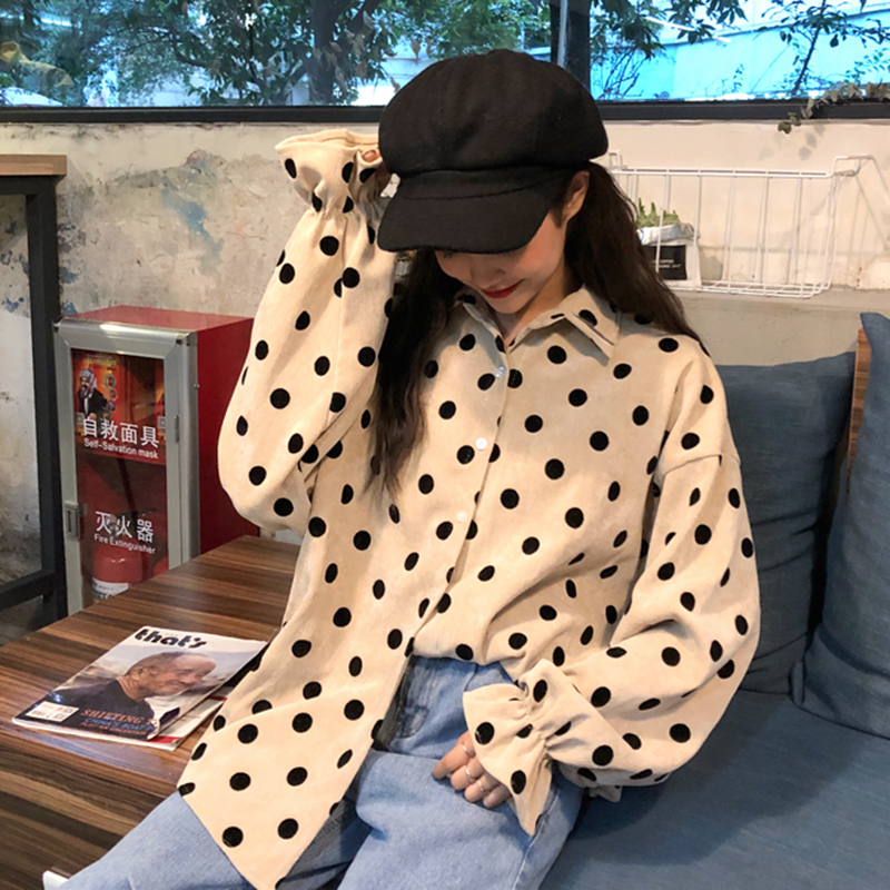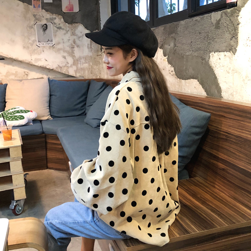 / 秋冬女裝2018新款燈芯絨寬松氣質波點襯衫時尚雙層領長袖外套上衣