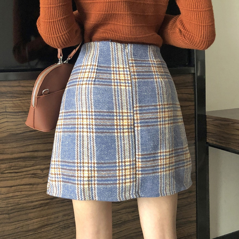 / 復古格紋裙子女秋冬2018新款毛呢短裙女學生a字裙ins超火的半身裙