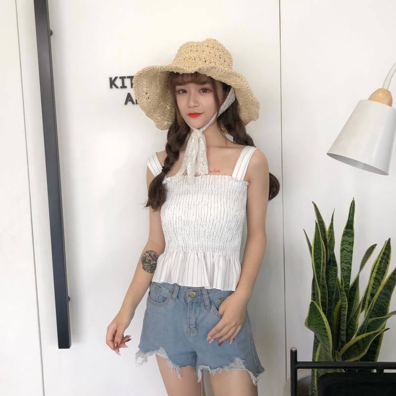 / 夏季女裝新款甜美荷葉邊清新打底吊帶衫外穿收腰顯瘦露肩短款背心