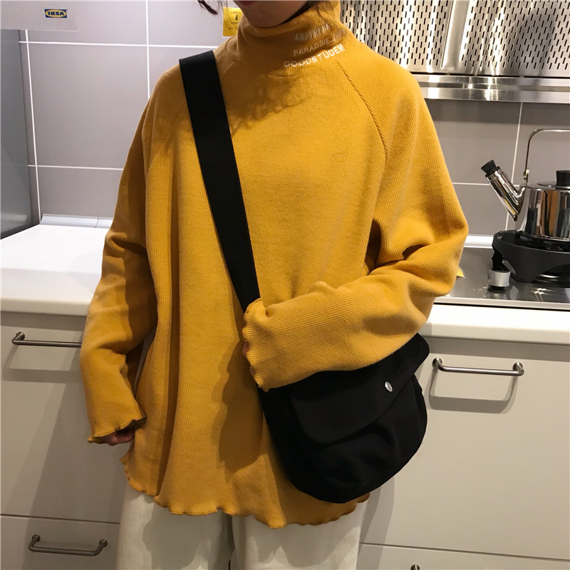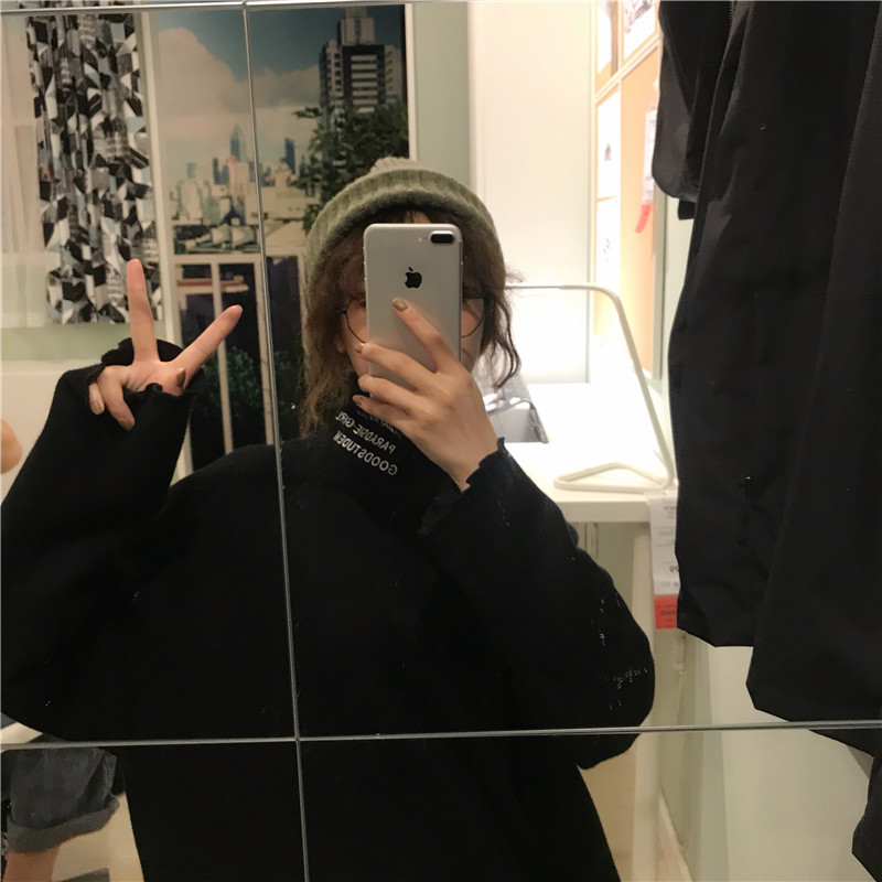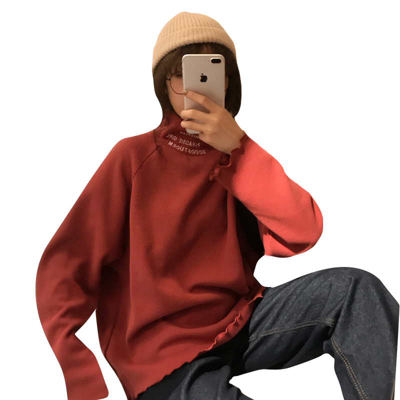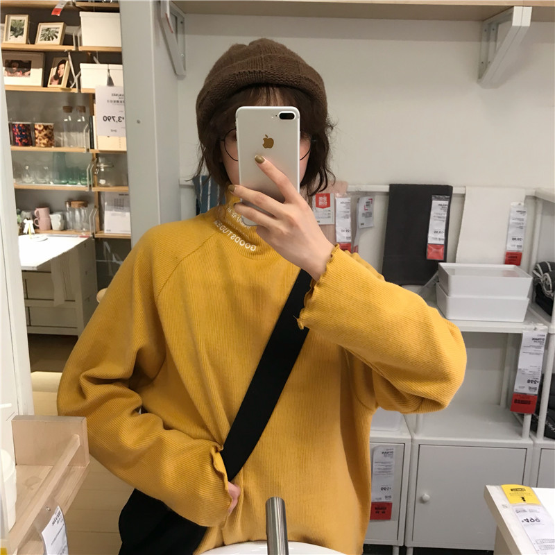 2018新款秋冬女裝韓版修身顯瘦半高領字母加厚長袖打底衫T恤上衣