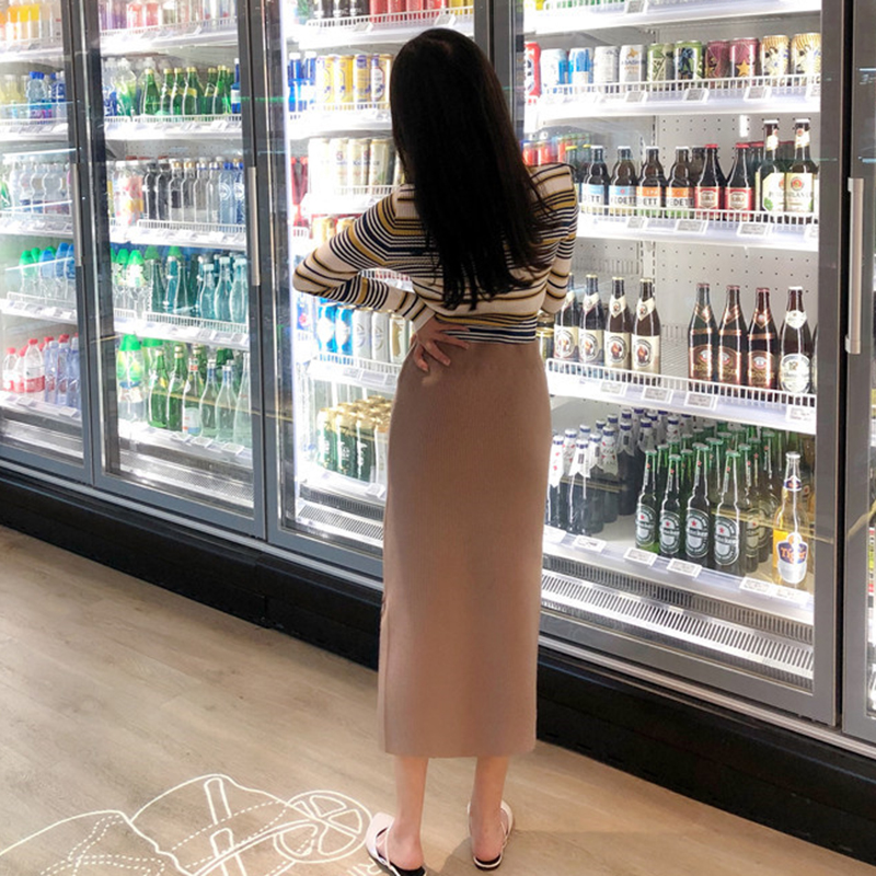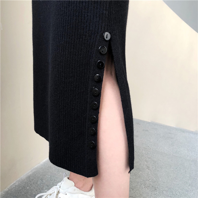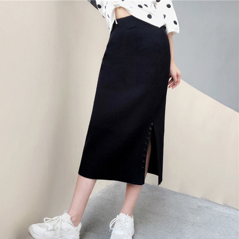 / 針織半身裙秋冬女裝新款高腰包臀一步裙氣質顯瘦排扣開叉中長裙子