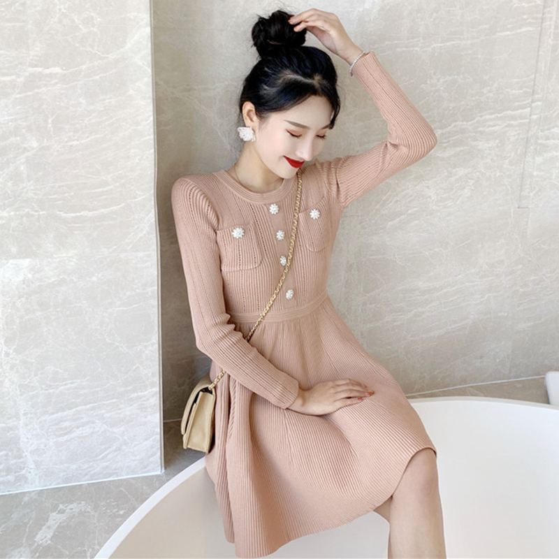 / 法式少女裙秋冬2018新款港味修身小個子初戀桔梗裙打底針織連衣裙