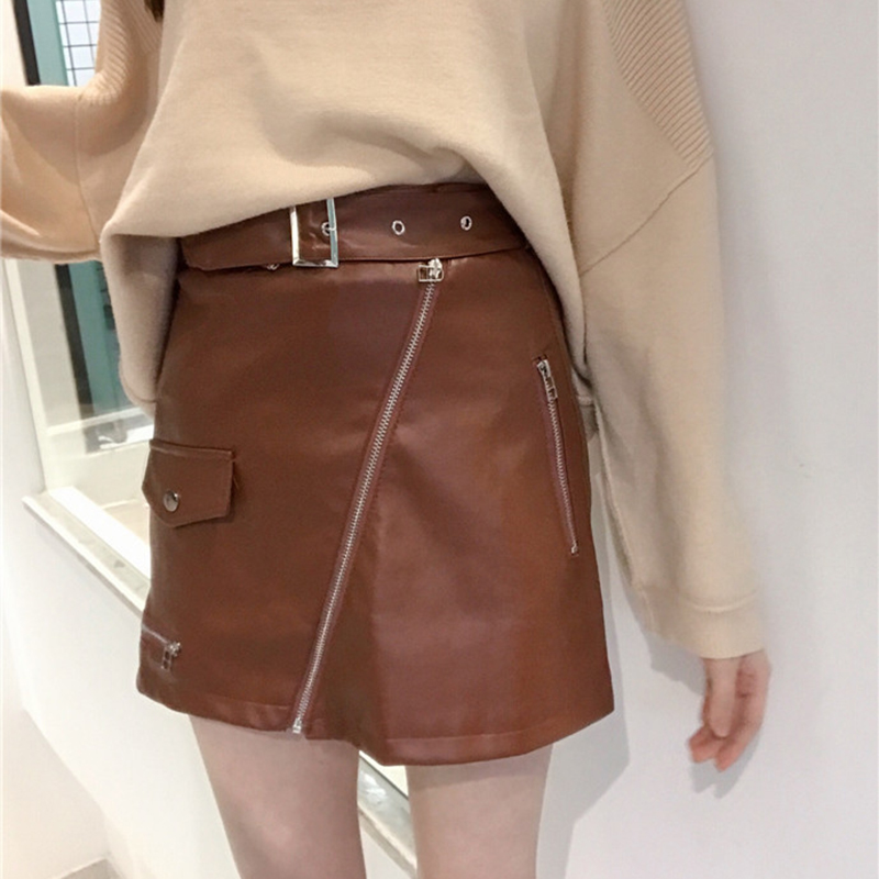 / 秋冬新款女裝高腰修身顯瘦拉鏈裝飾PU小皮裙學生包臀半身裙短裙女