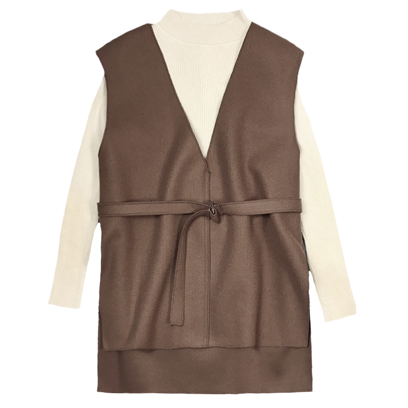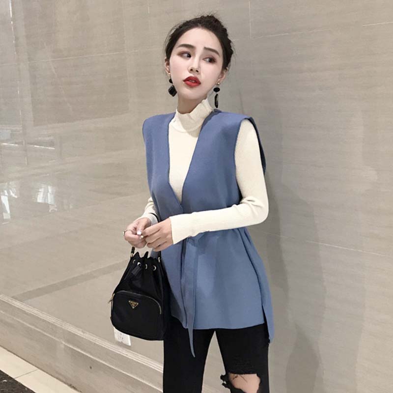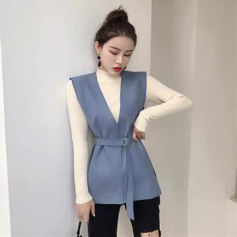 / 兩件套裝女秋新款收腰顯瘦V領馬甲外套小高領修身長袖打底針織衫