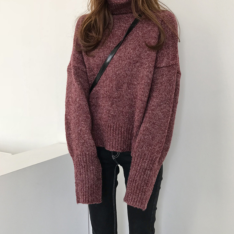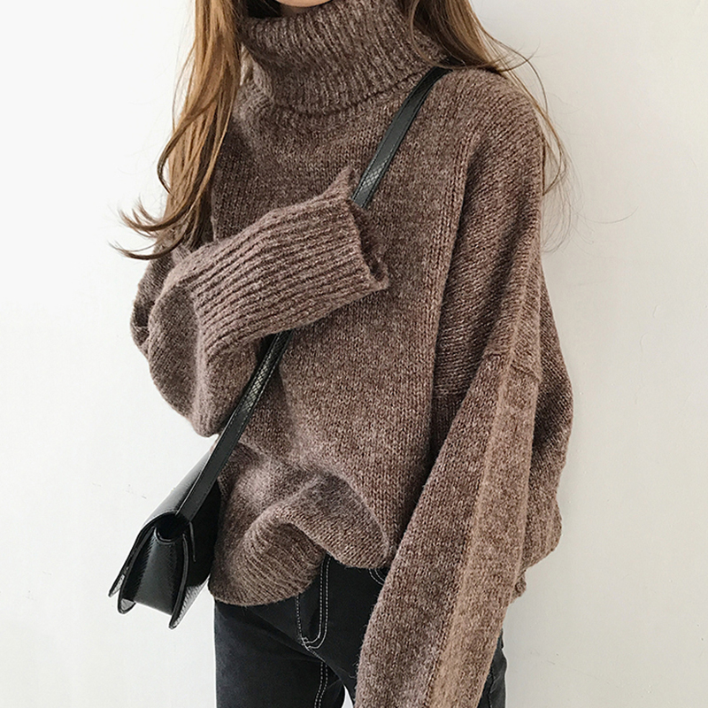 秋冬女裝2018新款韓版chic寬松高領粗線打底毛衣學生休閑針織外套