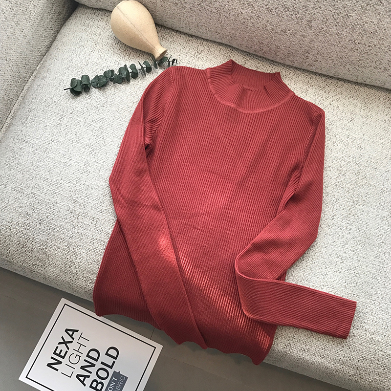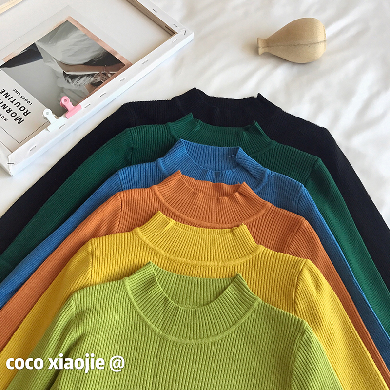 秋冬女裝2018新款半高領針織衫韓版氣質修身長袖打底衫糖果色毛衣
