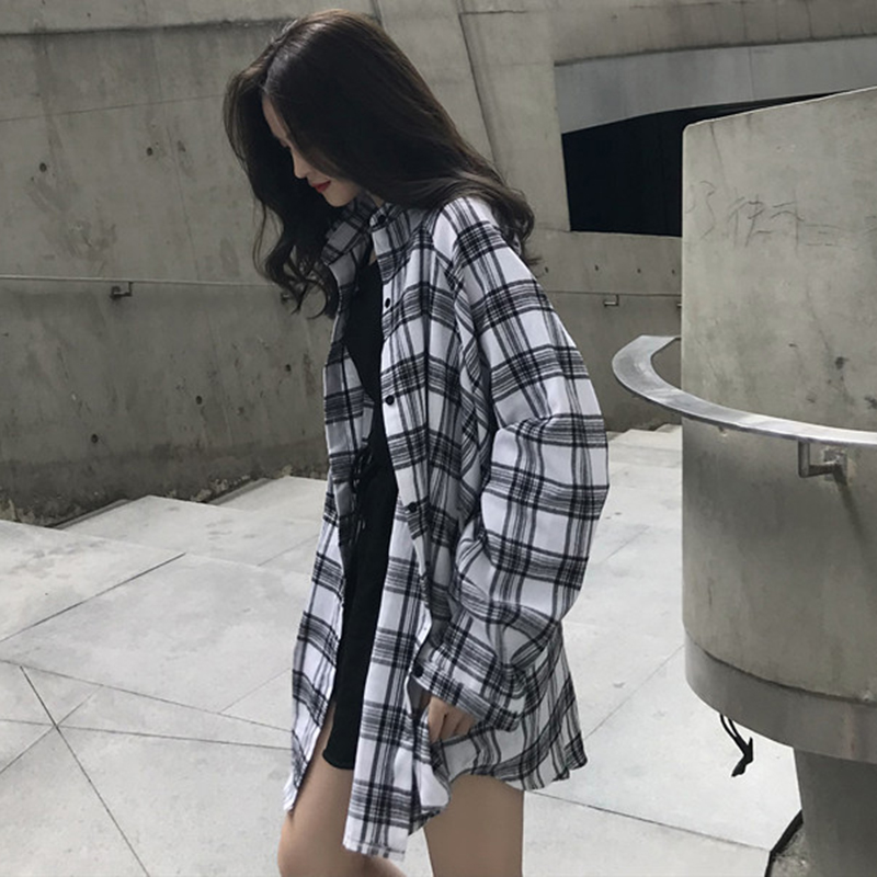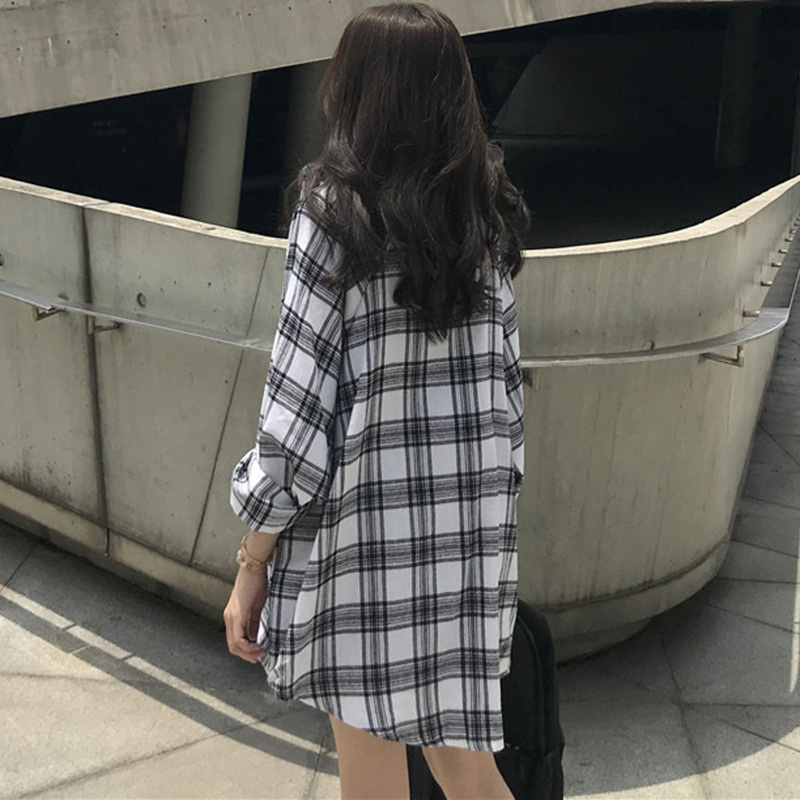 / 襯衣女夏季新款韓版女裝中長款寬松格子襯衫休閑百搭長袖防曬開衫