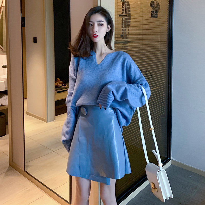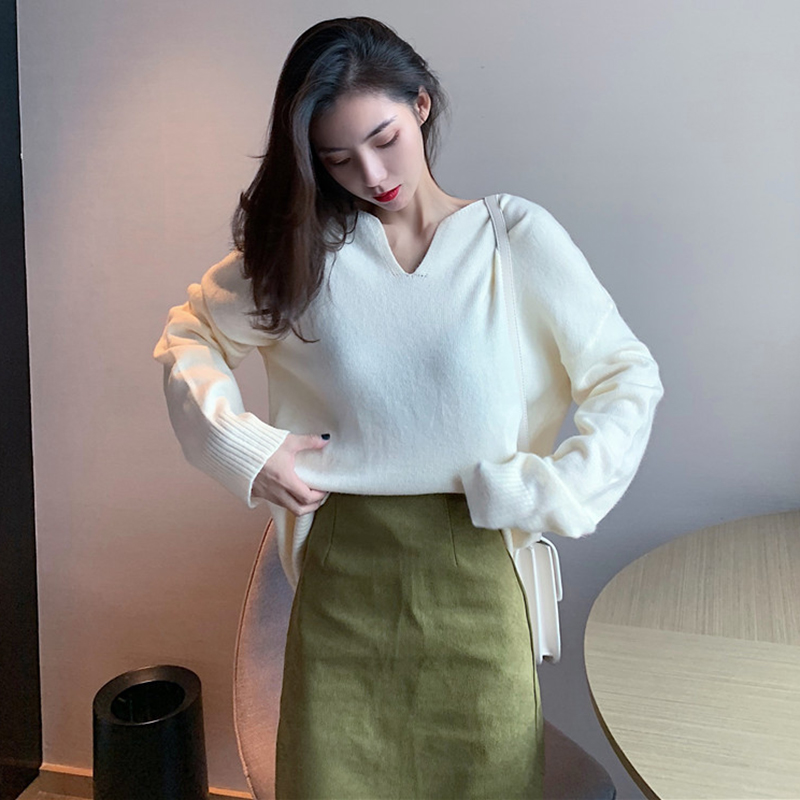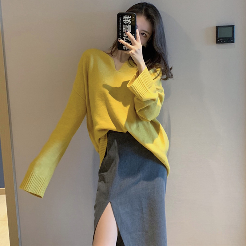/ 慵懶針織外套女秋冬裝新款韓版寬松V領長袖毛衣學生純色時尚上衣