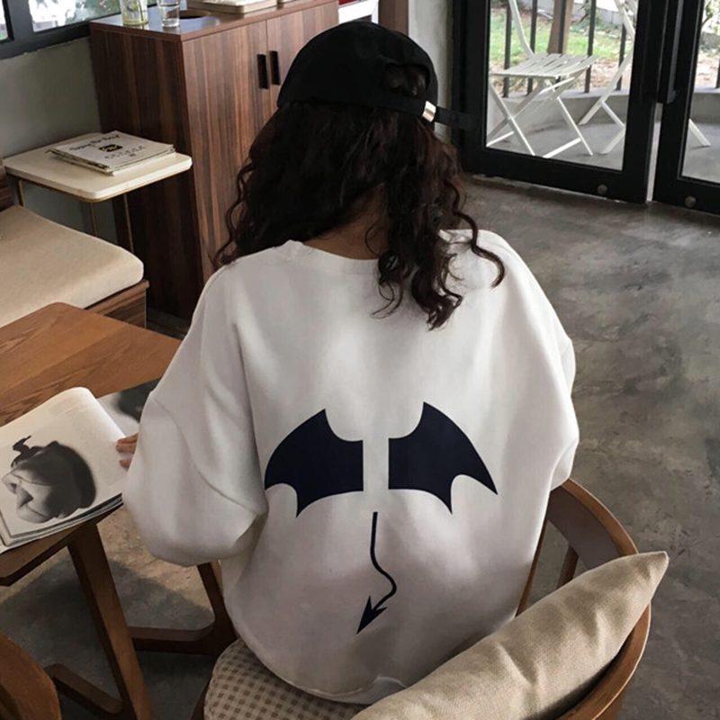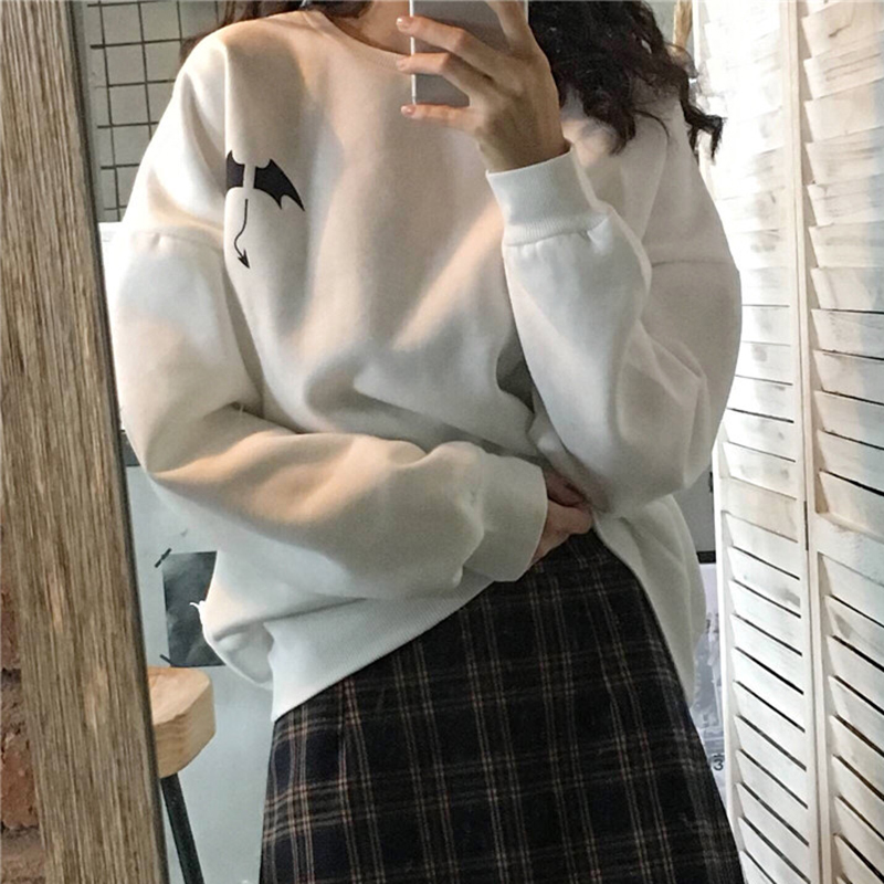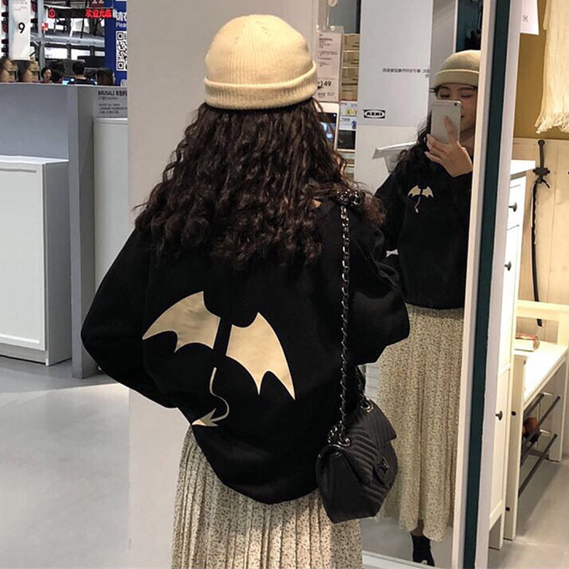 / 卡通蝙蝠印花加絨衛衣女秋冬裝2018新款韓版學生寬松長袖上衣外套