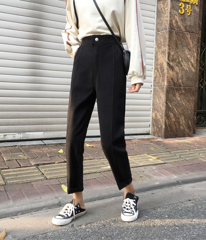 2018新款秋冬韓版寬松加厚學生毛呢褲子高腰闊腿褲九分褲休閑褲女