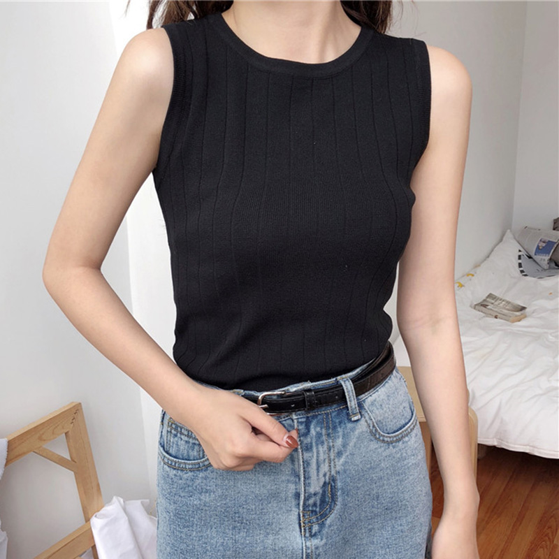 / 夏季新款女裝坑條圓領純色修身顯瘦學生百搭無袖打底針織背心女