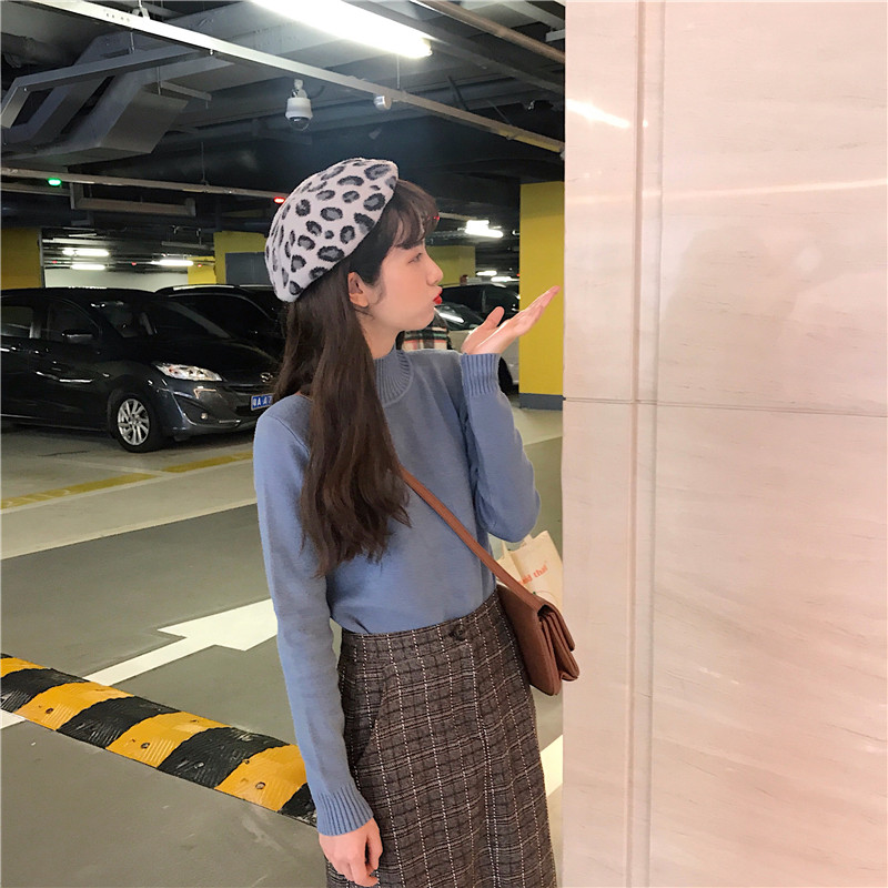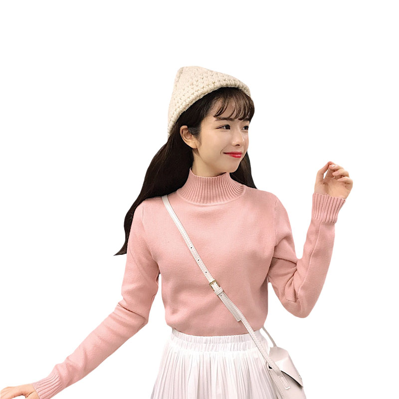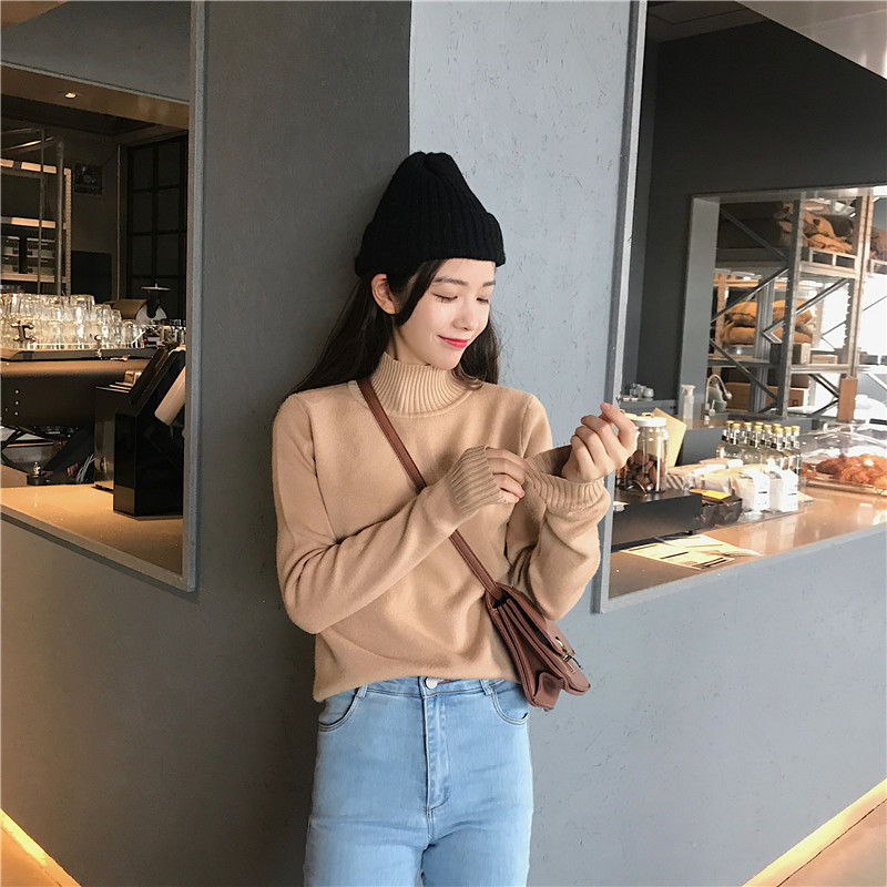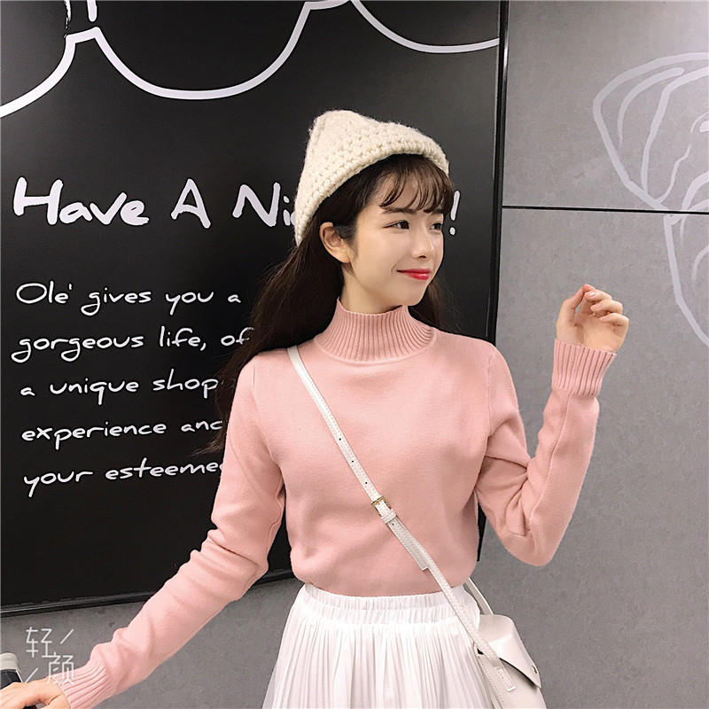 秋冬韓版純色修身顯瘦半高領網紅套頭針織衫打底衫毛衣上衣學生女