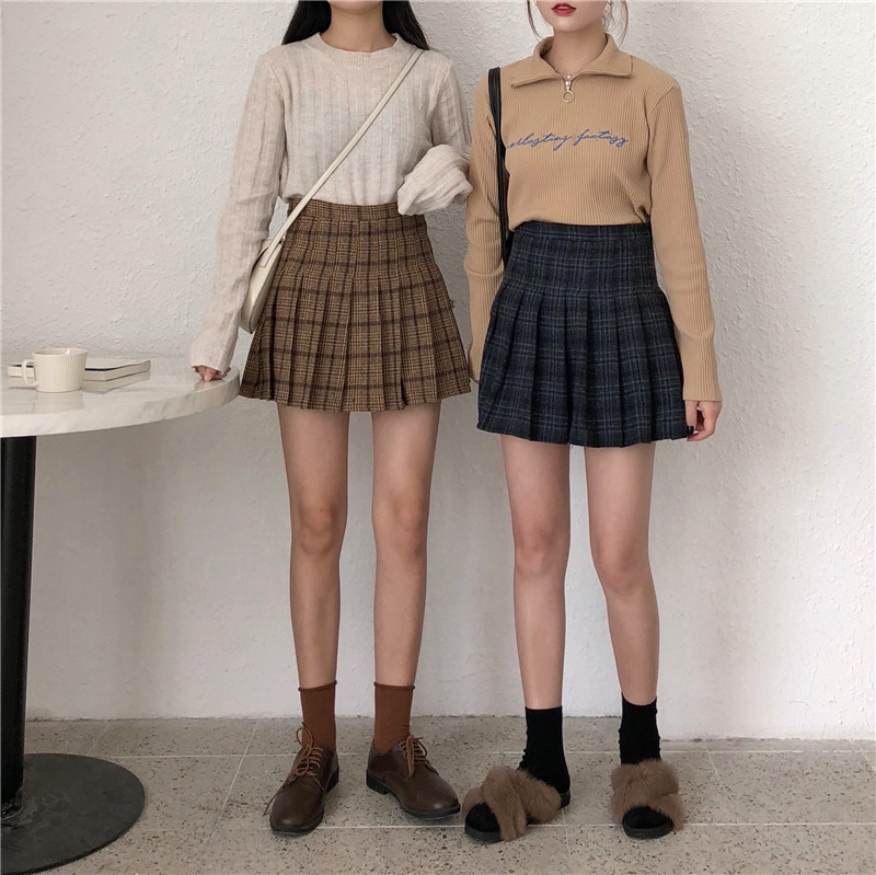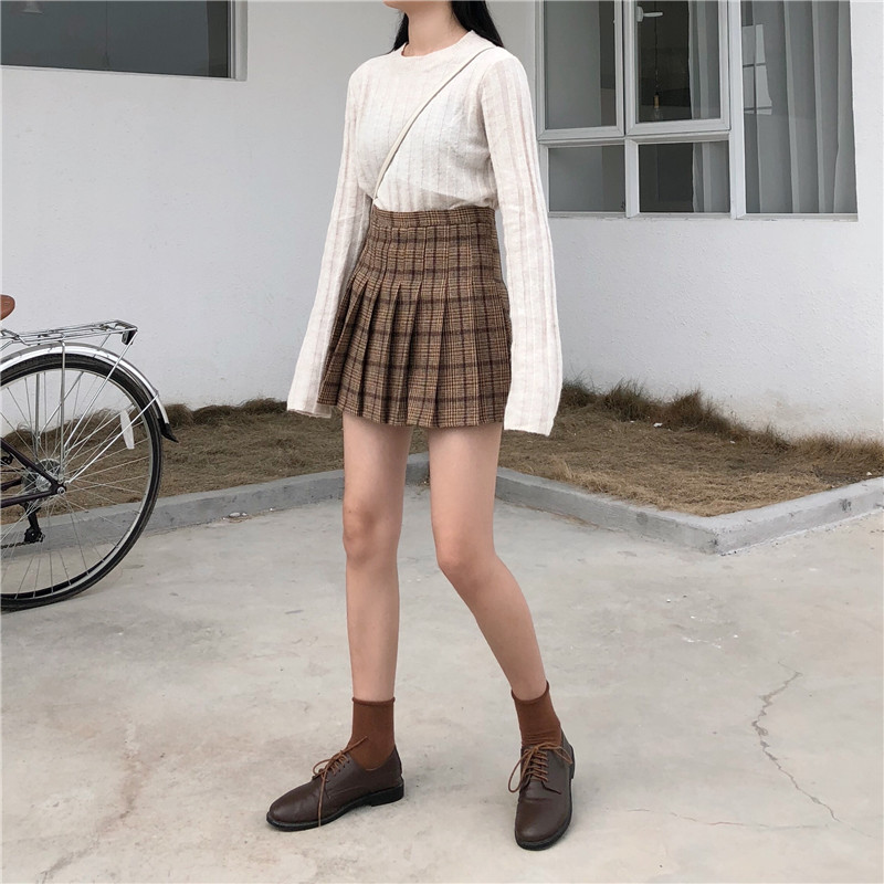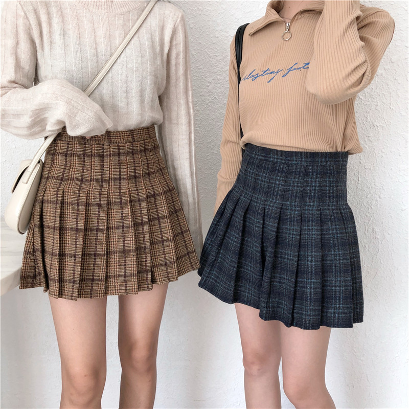 / 秋冬女裝2018新款復古風格紋毛呢百褶裙韓版高腰顯瘦A字半身裙子