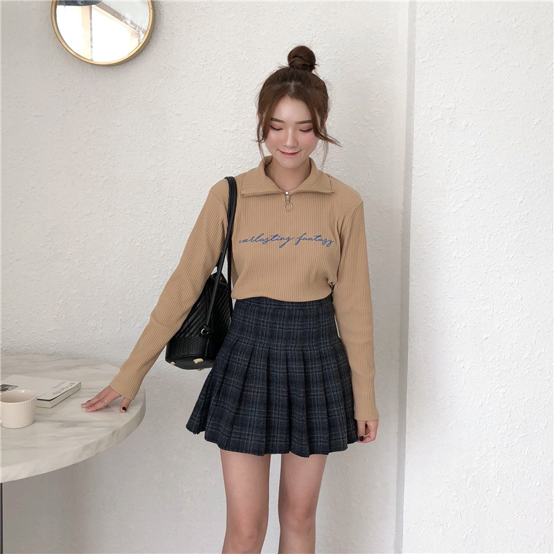 秋冬女裝2018新款復古風格紋毛呢百褶裙韓版高腰顯瘦A字半身裙子