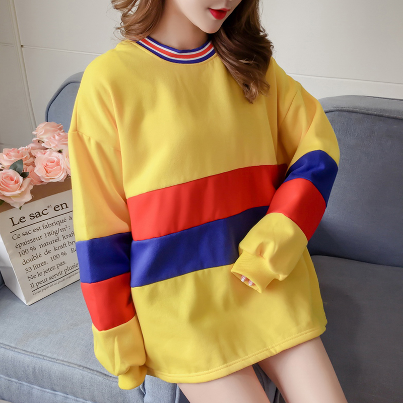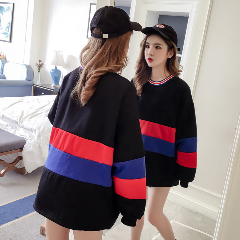 / 寬松時尚衛衣2018新款女秋冬裝港風撞色條紋上衣學生圓領長袖外套