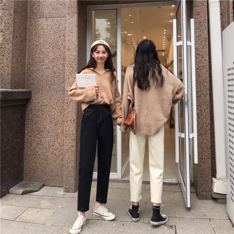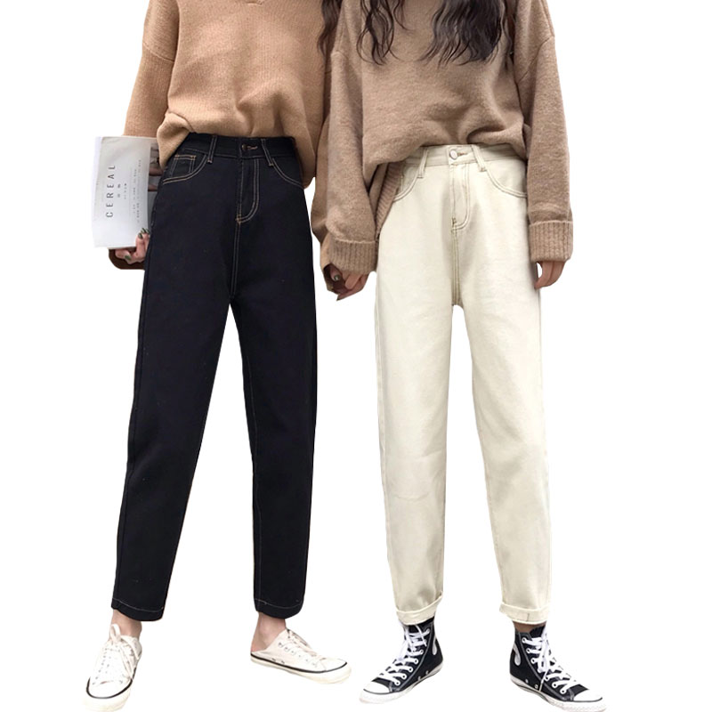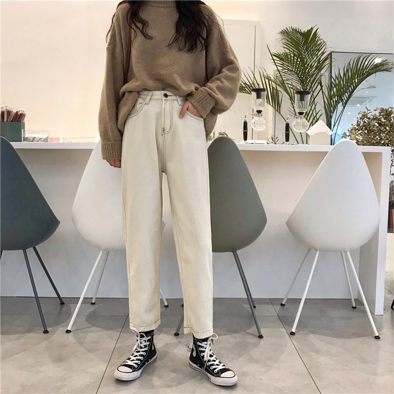 / 秋冬韓版復古寬松百搭牛仔褲高腰顯瘦直筒褲闊腿褲長褲學生褲子女