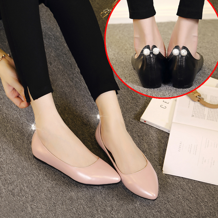 / 春季新款淺口低跟單鞋水鉆舒適瓢鞋軟底尖頭韓版百搭平底軟面女鞋