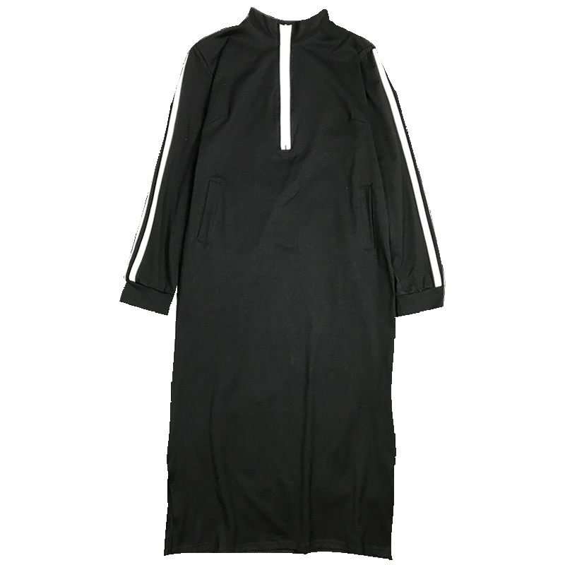 / 早秋2018新款韓版女裝學生寬松三條杠長袖衛衣休閑套頭長款連衣裙