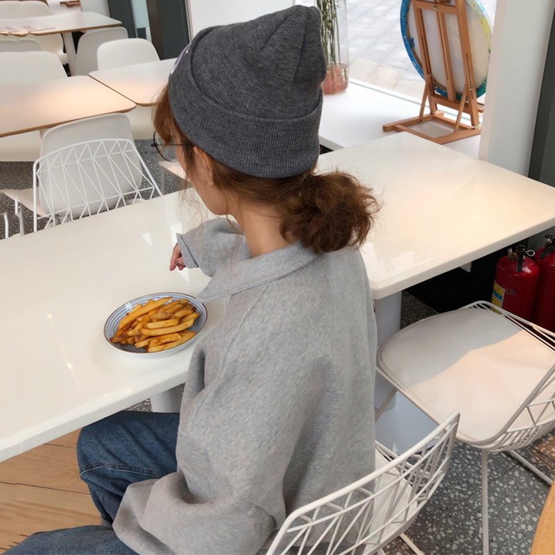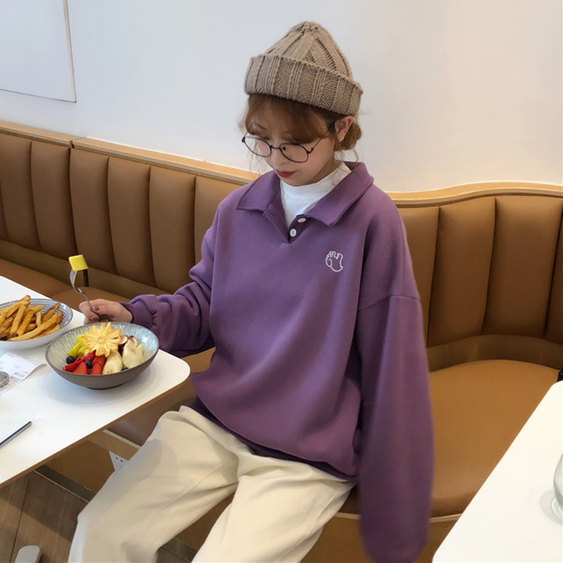 外套女2018新款秋冬韓版學院風寬松可愛卡通刺繡加厚加絨polo衛衣