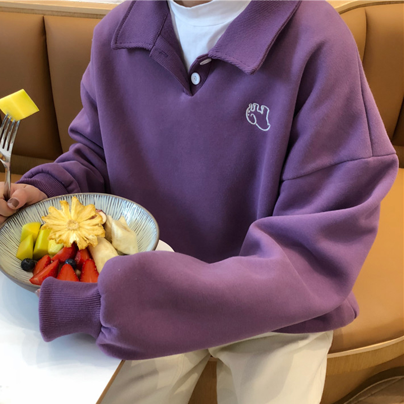 / 外套女2018新款秋冬韓版學院風寬松可愛卡通刺繡加厚加絨polo衛衣